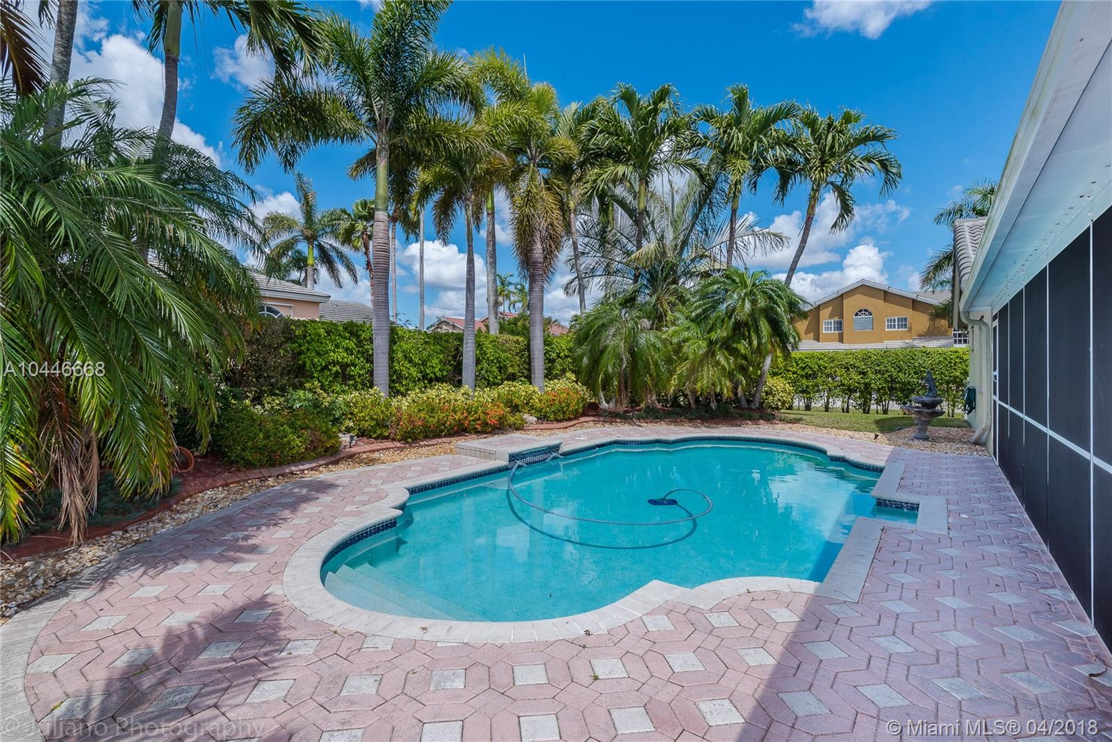 Stunning home in Chapel Trail, the most sought after neighborhood in West Pembroke Pines. A+ schools, 4 Bedroom, 2.5 Bathrooms; immaculate single-family home. Custom remodelled eat in kitchen with granite counter tops, wood cabinets, upgraded appliances and large island great for entertaining. Custom remodelled bathrooms with double vanity, spa tub and marble throughout. Large 24x24 Porcelain tiles throughout home. High vaulted ceilings with spacious bedrooms and living areas. Brand new A/C (2016) and Water Heater (2018). Roof fully replaced in 2015. Fabulous fenced in back yard with pool area, enclosed patio and exquisite landscaping. A property not to miss!