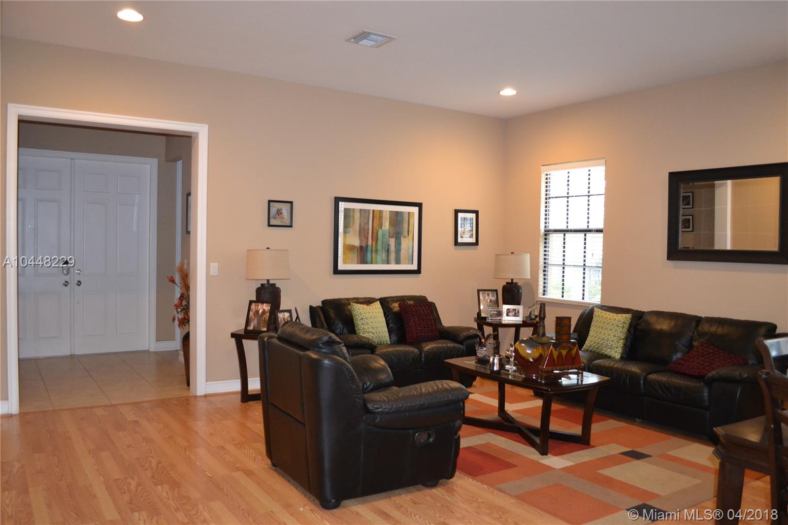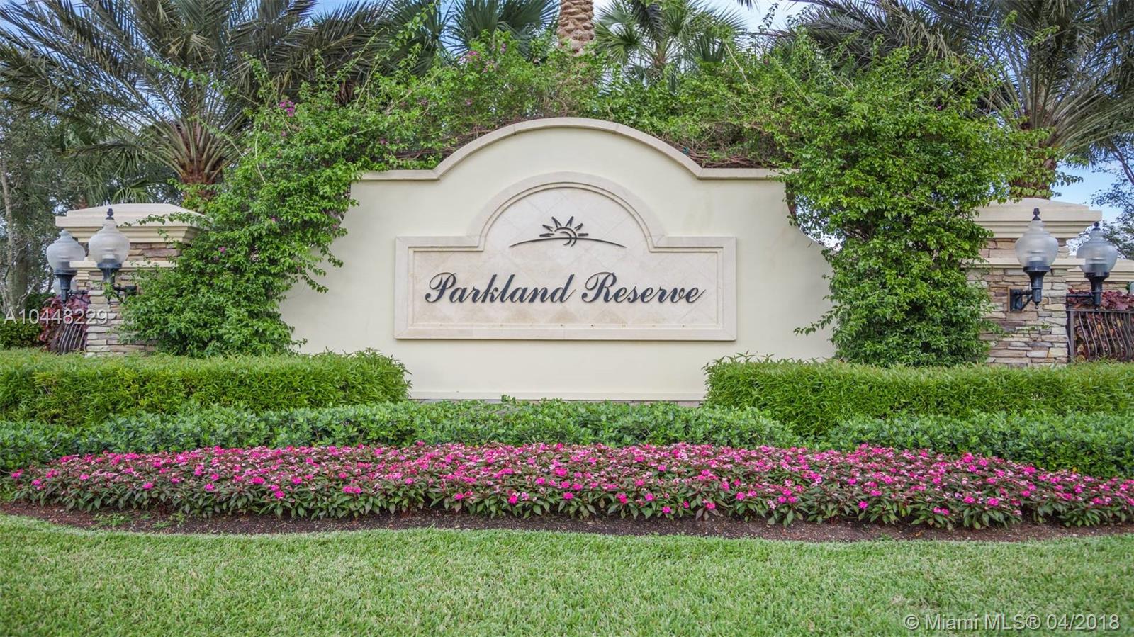 Gorgeous 4 Bedroom home with 3 full baths 2 car garage in the prestigious Parkland Reserve. This spacious home is move-in ready freshly painted exterior, impact windows/doors, crown moldings, tall baseboards and a light bright and airy feeling. Tile in the living room areas and beautiful wood floors thru-out the bedrooms. Excellent kitchen with 42" wood cabinets and granite counter tops along with a huge Island provides more than enough prep space. Laundry room has high efficiency washer, dryer, a laundry tub plus tall cabinets for your storage convenience. Covered back patio has extended pavers that compliment the lush grassy fenced backyard with plenty of room for a swimming pool. Great home close to A+ schools, parks and shopping in an amazing exclusive community. This is A MUST SEE!