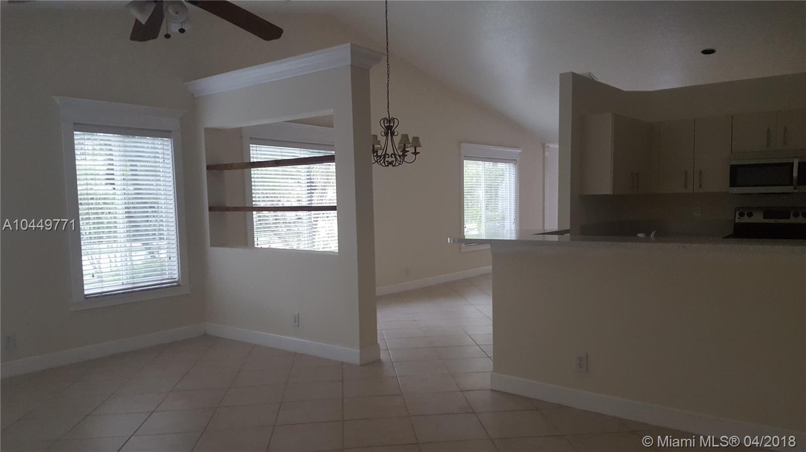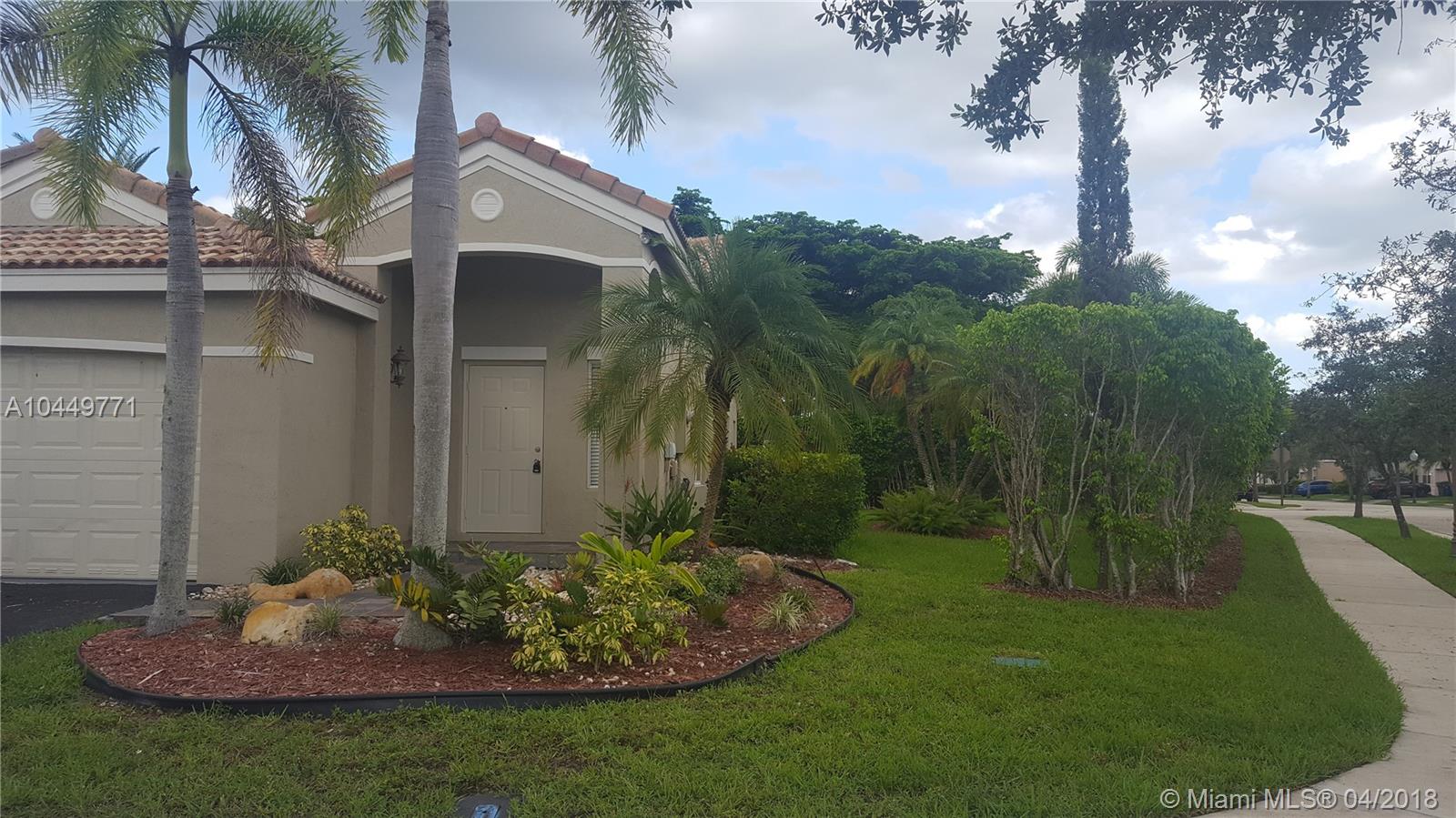 Beautiful one story corner house with 3 bedrooms, 2 baths. Open and spacious design with living/dining and family room. Stainless Steel appliances, tile in common areas and berber carpet in bedrooms. Located in the desirable Savanna in Weston, very close to the club house and community amenities including pool with slides, mini golf, basketball, child play area and much more! Near to A+schools and with easy access to expressways.