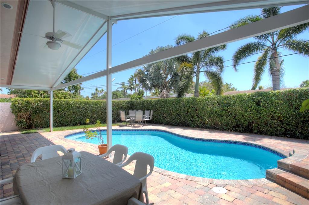 The Search for a perfect SO FL home ends here. This 2BR 2BA home w/ FL Room & fully permitted Sun Room easily converts to 3BR/office/den. Heated Salt water pool, CBS privacy fenced backyard & 1 Car garage w/built in cabinetry. Beautiful Sunroom addition features Vaulted Ceilings & Skylights, Large Shed/Workshop, Irrigation on well w/rust prevention & fertilizer built in & an 8-Camera Security system. Great location overlooking Middle River Terrace Community Dock. A short walk to Wilton Drive!