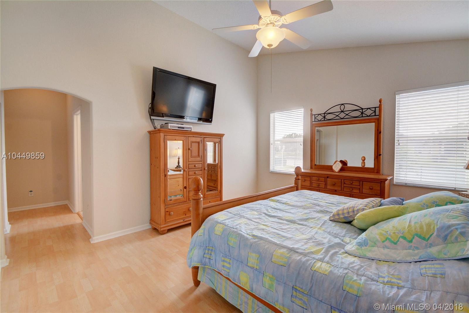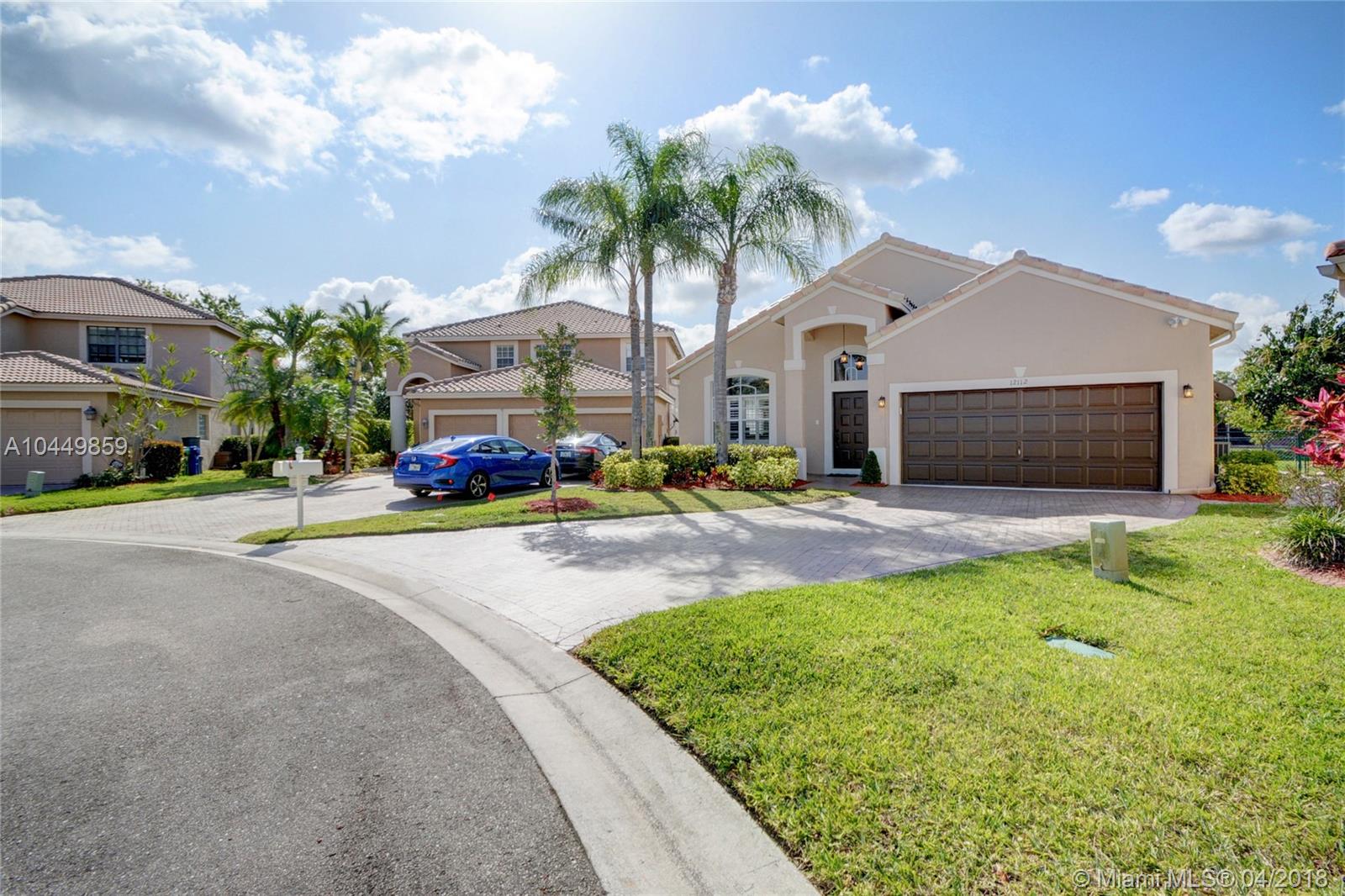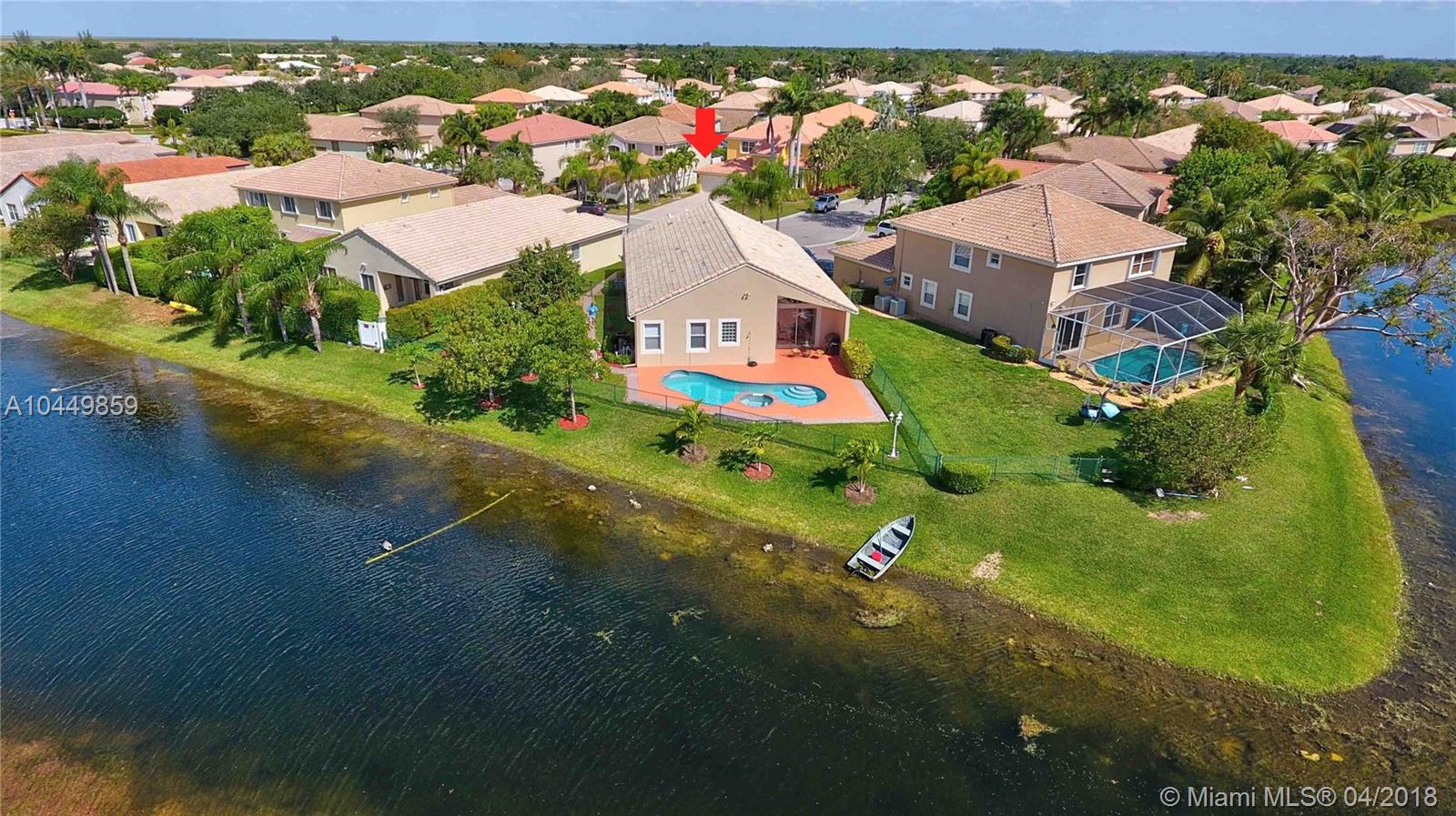 This house has it all!. One story,large pie shaped waterfront lot, heated swimming pool, luscious fruit trees (mango, papaya, loquat, lemon, avocado), high volume ceilings, eat in kitchen, stainless steel appliances, granite countertops, new A/C 6 years ago, 18" tile floors in living areas, laminated in bedrooms, plantation shutters, wood blinds. Coral Shores is a gated community, all A+ rated schools. Travertine table and mantle stays with property.Financed offers must include desktop underwriting approval.