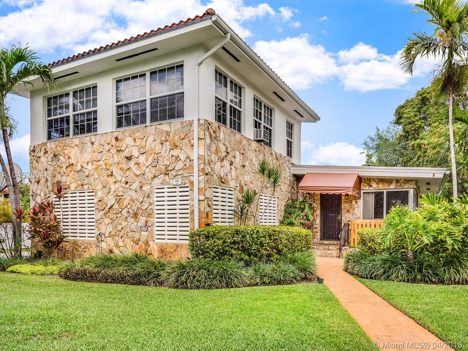 One of a kind and hard to find, this beautiful home is just a few blocks to Biscayne Bay. Situated on an over-sized lot with plenty of room for a pool. Open and airy floor plan with lots of windows bringing the outdoors to the inside accompanied by a formal living area with massive corner stone fireplace. Hardwood and Cuban tile floors, kitchen and family room combination. 3+ Bedrooms downstairs and 3+ upstairs. Lovingly cared for and ready for your personal touch. Do not miss.