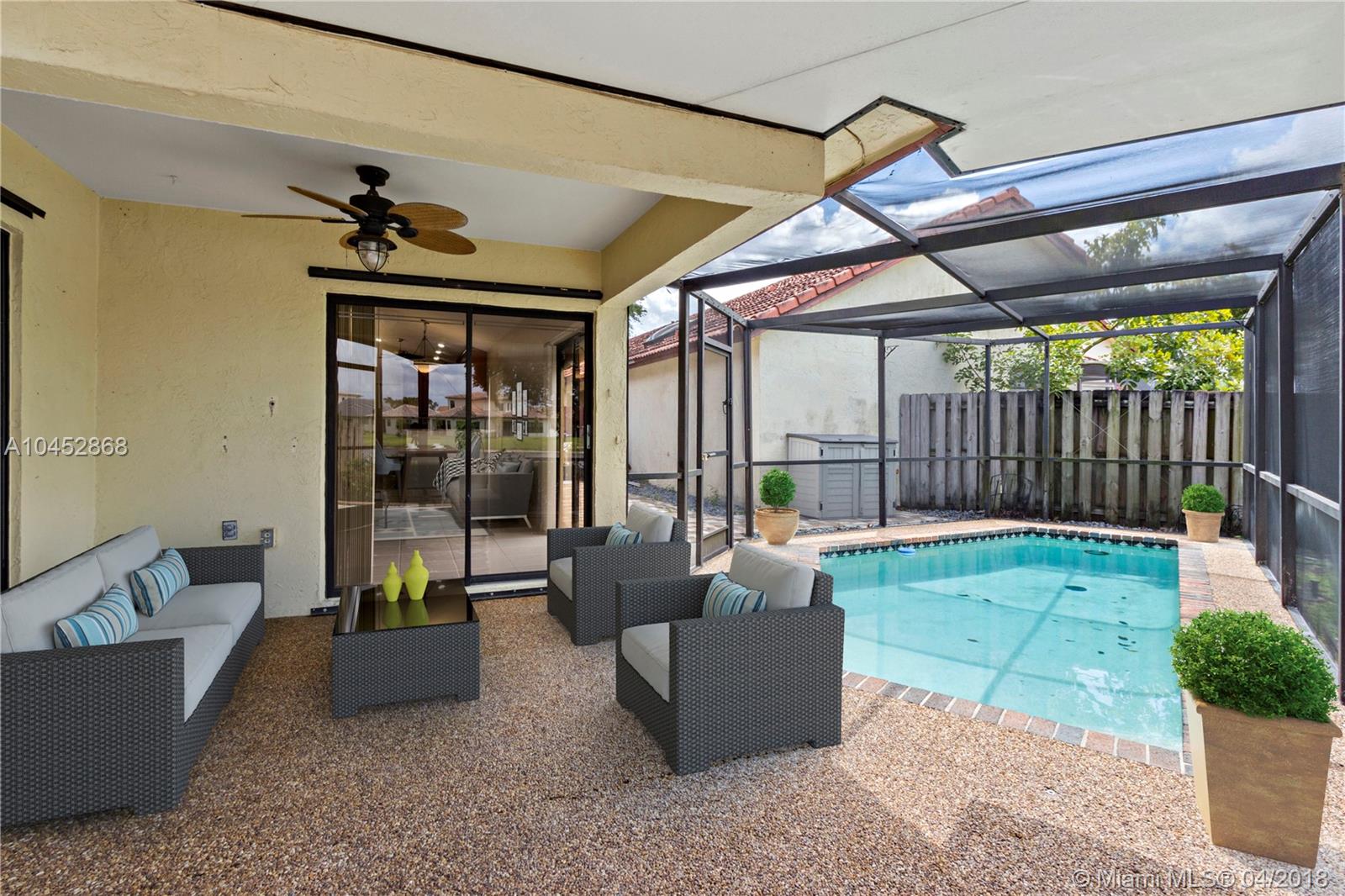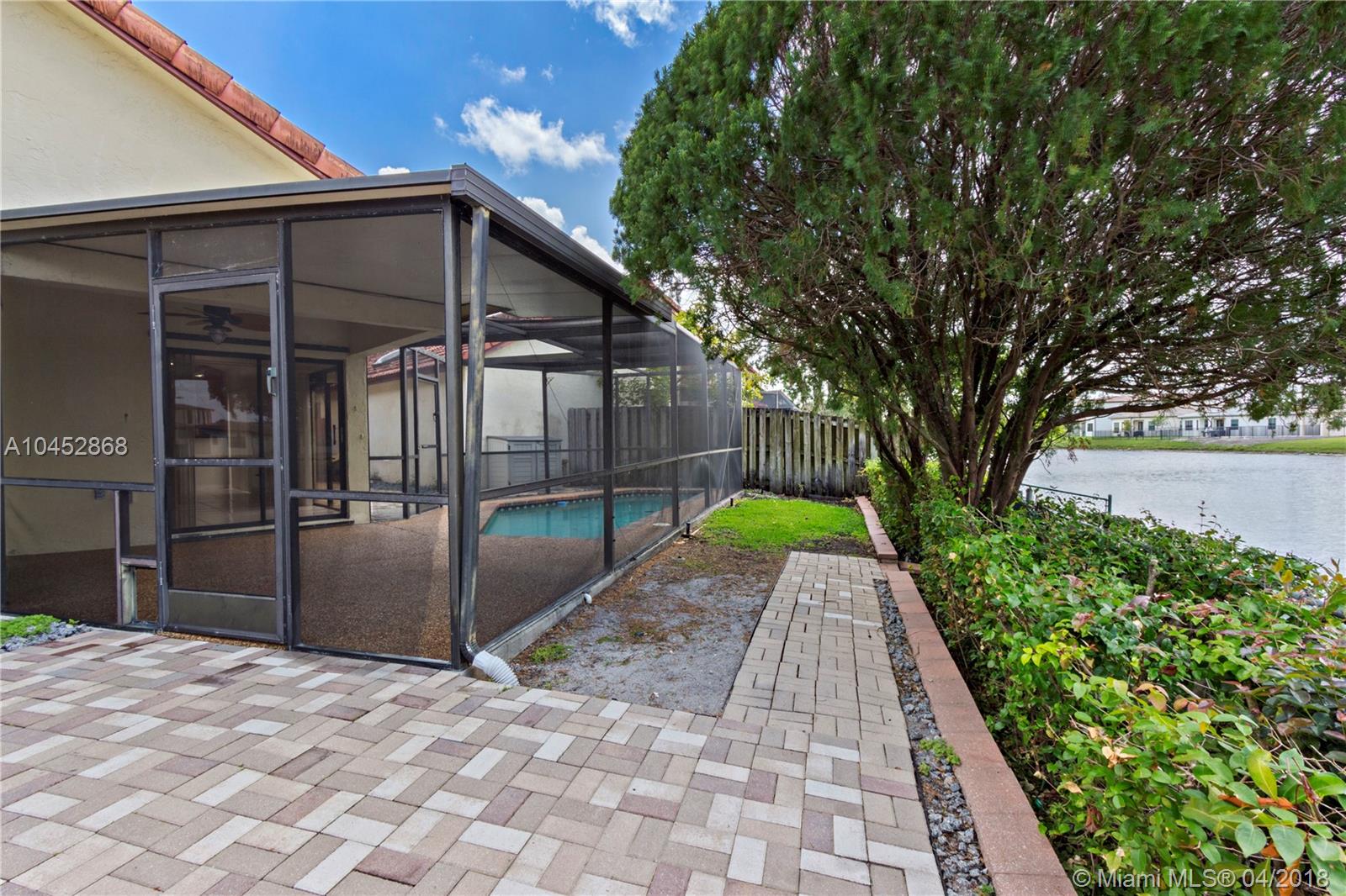 TURN KEY LAKEFRONT POOL HOME! Fresh Painted Interior! High Volume Ceilings, Tile floor throughout Living Areas, and Wood Laminate in Bedrooms. NO Carpet! Remodeled Kitchen (5 years) with thick slab granite countertops. Newer AC, only 2 years old. Newer Washer & Dryer only 2 Years old. Newer Roof, 10 years old. Screened in Pool and Patio overlooking the lake! Hurricane Shutters.