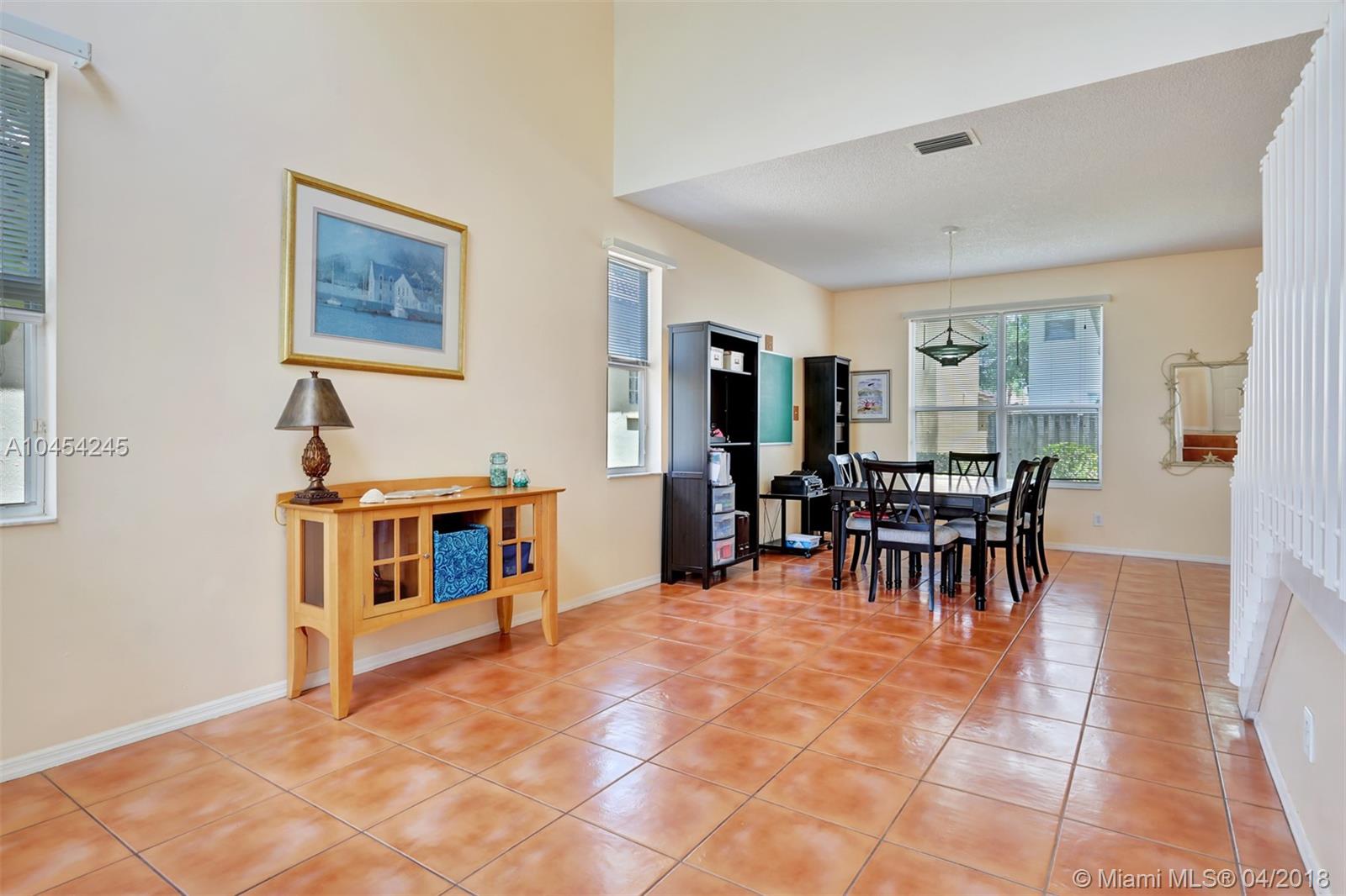 Beautiful cul de sac home located in sought-after community. High ceilings, plenty of windows and natural light. Kitchen redone with Granite counter tops and Stainless Steel appliances, large snack counter area leading to Family room, breakfast area, large Master bedroom featuring a tray ceiling, double door entry and a walk-in closet. Hurricane shutters for the entire home. Great community, minutes from major highways and a low HOA fee.