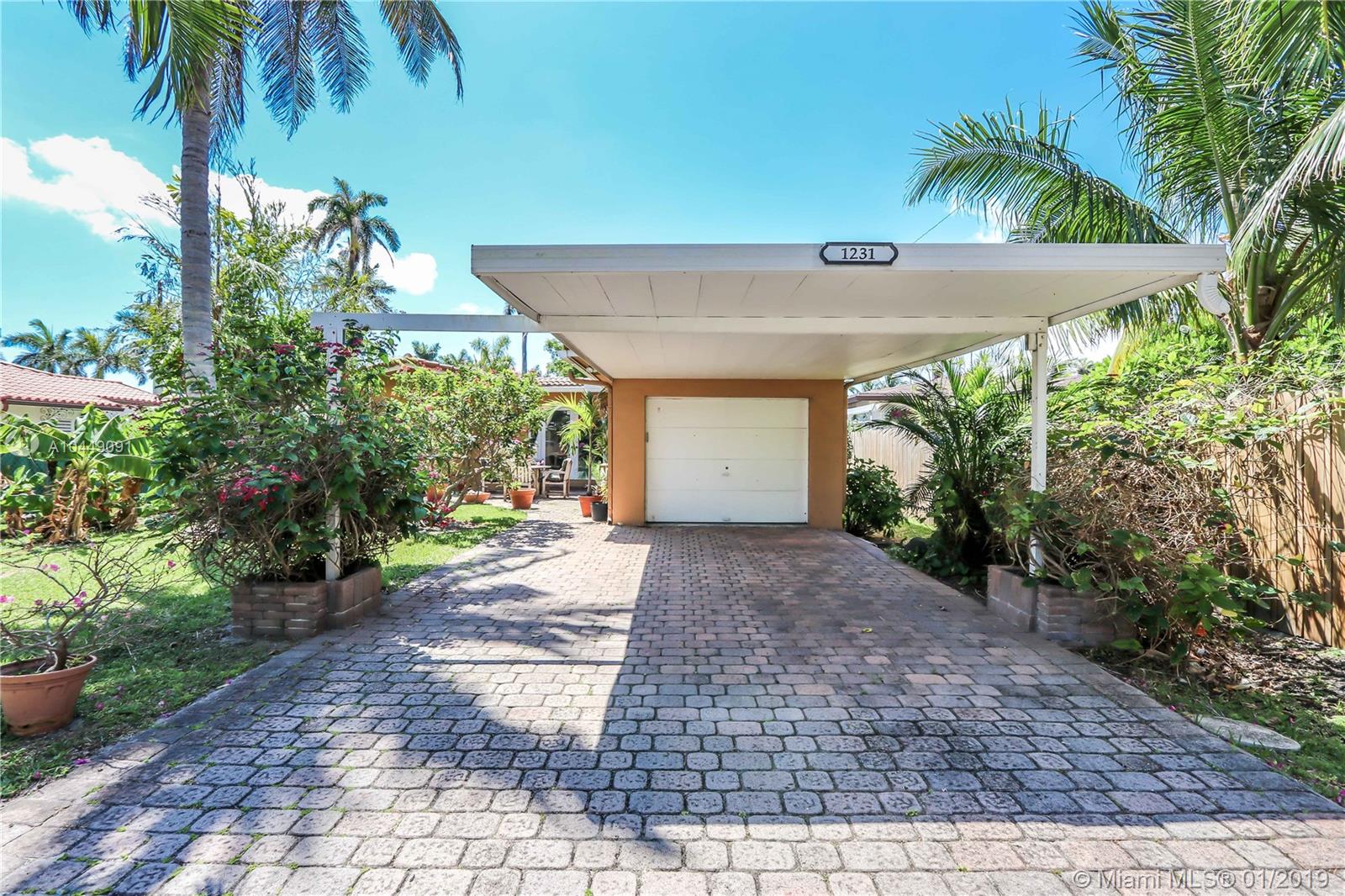 Great location just 2 houses down from North Lake. Lovely 2Bedroom/2Bath with 1 car garage plus a covered carport features a living room, family room, and formal dining room. Spacious open kitchen features white cabinets, counter tops, bar height dining and tile floors throughout. French door access from family room to lush fenced outdoor space. Short Distance to Downtown, Minutes from FLL International Airport and Short Drive to The Beach.