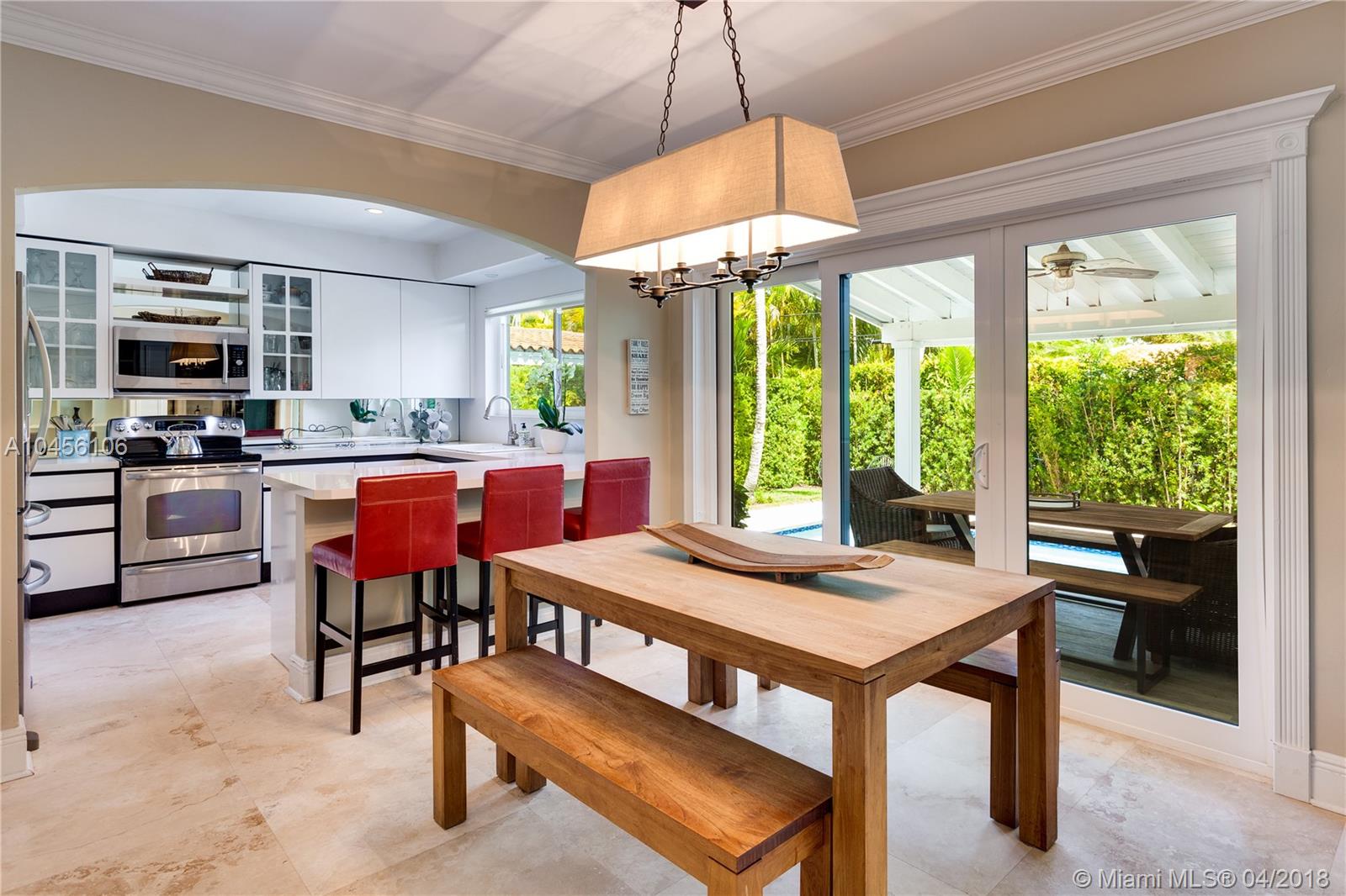 A one-story home in the highly sought after Coral Gables neighborhood known as the Platinum Triangle is now available. Shall we start with the curb appeal? This home has it. This 4 bedroom, 3 bath beauty delights in its architectural details, starting with the charming foyer that announces you have arrived and continues into the enchanting living and dining room with its intricate moldings and finishes. An updated kitchen and breakfast bar overlook the heated pool and covered veranda that act as an outdoor living room. Updated bathrooms are fresh and contemporary, and the master suite includes an office niche as well as a walk-in closet. A Very Special Home.