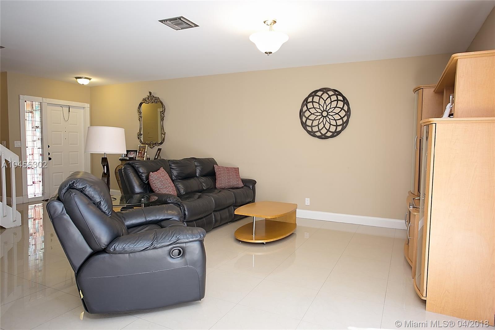 This tastefully updated 3 bedroom 3 bathroom townhouse has a private setting with no neighbors behind. Patio is enclosed and currently used as dining area. Remodeled kitchen (2013) with additional cabinets and trendy tiled backsplash. Spacious great room accommodates living area and dining room. Spacious master bedroom has room for a sitting area. Large neutral tile downstairs (2015) and wood floors upstairs. All bathrooms have updated (2013) cabinets and fixtures and downstairs bathroom completely retiled. One bedroom and one bathroom on entry level. Lots of closets through out for extra storage. A/C installed in 2016. Accordion shutters. Maintenance includes building exterior and roof repairs. Gated community. Amenities include pool and children's play area.