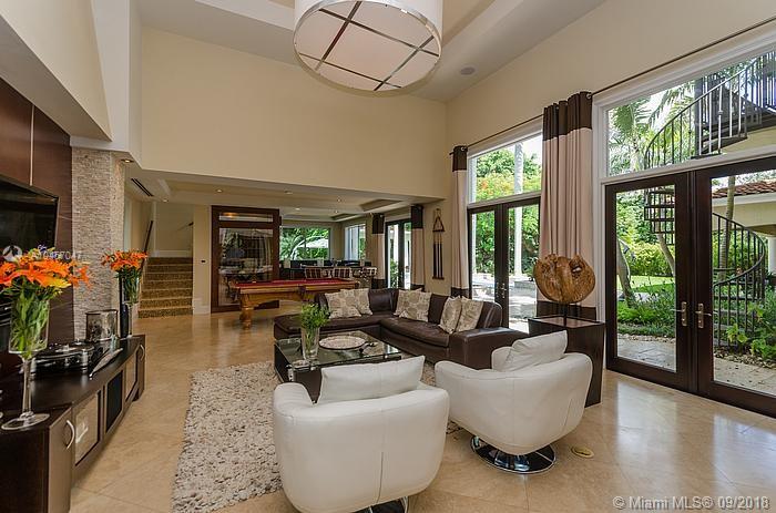 Beautiful 2 story Euro-Traditional style estate located in quiet, gated Pinecrest enclave of 5 homes! Expansive open floor plan with volume ceilings and French doors throughout. All luxurious appointments and amenities. Gorgeous living and formal dining rooms. Amazing recreation/family room with wine cellar, full bar. Home theater, office, gym. Surround system. Brand new 2017 modern kitchen. Separate maids room. Lavish master suite. Marble and wood floors. Stunning and lush grounds. Inviting open pool. Summer kitchen. A must see!!