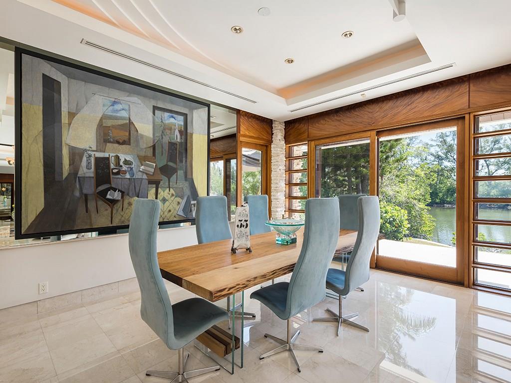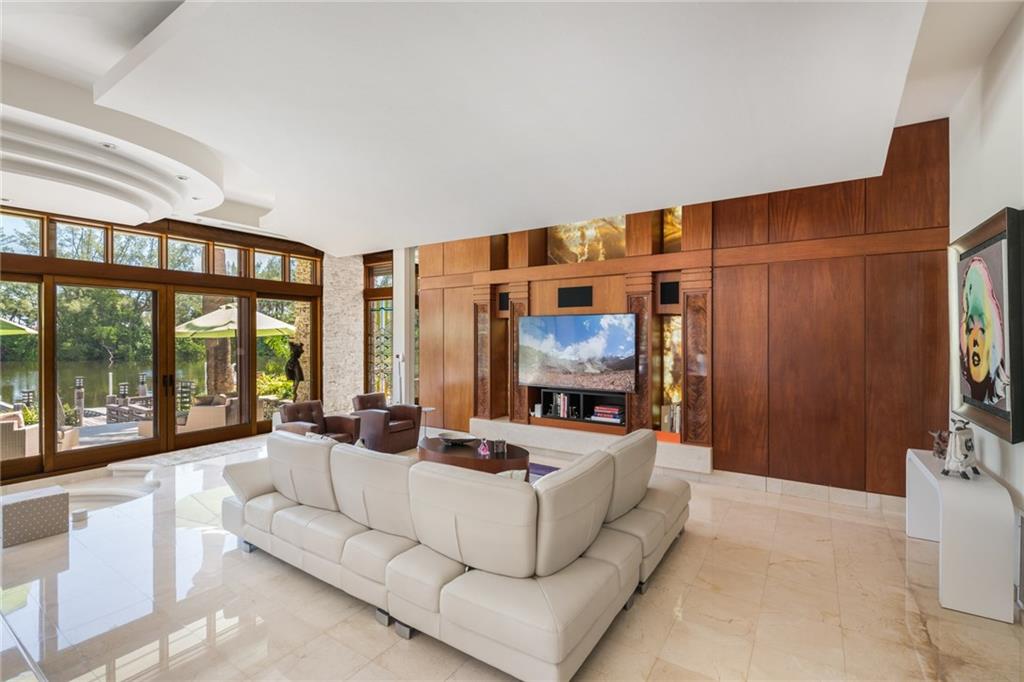 Glamorous Frank Lloyd Wright inspired waterfront residence in gated community of Harbor Beach.This breathtaking home on Lake Mayan, wildlife sanctuary adjacent to private beach/surf club. Floor to ceiling windows capturing the serene beauty of this unique location. Natural coral, onyx, marble, stained glass windows & granite complement the beauty of this home. Lutron & fiber optic lighting & fine wood craftsmanship. Chefs kitchen & grand master suite with 1400 sq ft roof top terrace. Full house generator.