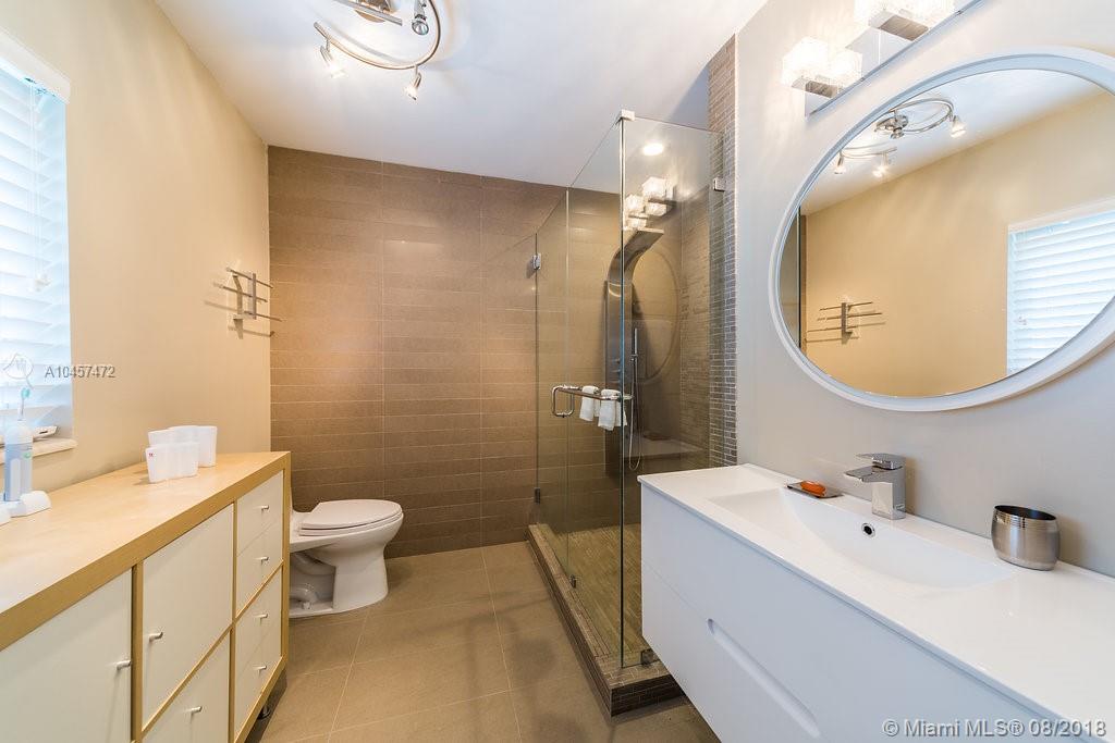 This beautiful 3/2 classic home with 2 car garage located in Miami Shores east of Biscayne Blvd. has been substantially updated and impeccably maintained. Features include open floor plan, new kitchen with wood cabinetry with lighting inside the cabinets and drawers, granite counter tops and stainless steel appliances complete with gas range. Both bathrooms have been completely renovated. Original oak hardwood floors in living area & bedrooms. Impact windows, doors and garage door. Newer Trane HVAC system, whole-house natural gas powered generator w/service warranty, new water heater, front load washer & dryer. Exterior features include screened porch, in-ground gas heated hot tub & lush, professionally landscaped fenced yard.