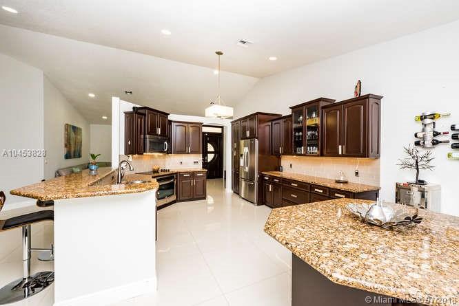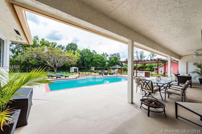 Generous spaces, Right what you need! This single family home features four Beds and 3.5 baths with an additional den/office-now with a state of the art built in library. 2 attached car garage on an acre of land in the heart of Southwest Ranches. Wooden floors in all the Bedrooms and ceramic floors throughout the unit. One-year-old Rheem AC unit. Impact glass in the front window by the entrance/in the office and hurricane panels for the rest of the house. This familiar floor plan is family ready! Perfectly clean, well maintained house ready to move in. The pool has been re-surfaced. Kitchen with Granite counter tops & high-end stainless steel appliances and wooden cabinets, Wood Chimney. Quiet and peaceful neighborhood with all the A+ schools and easy access to all highways!