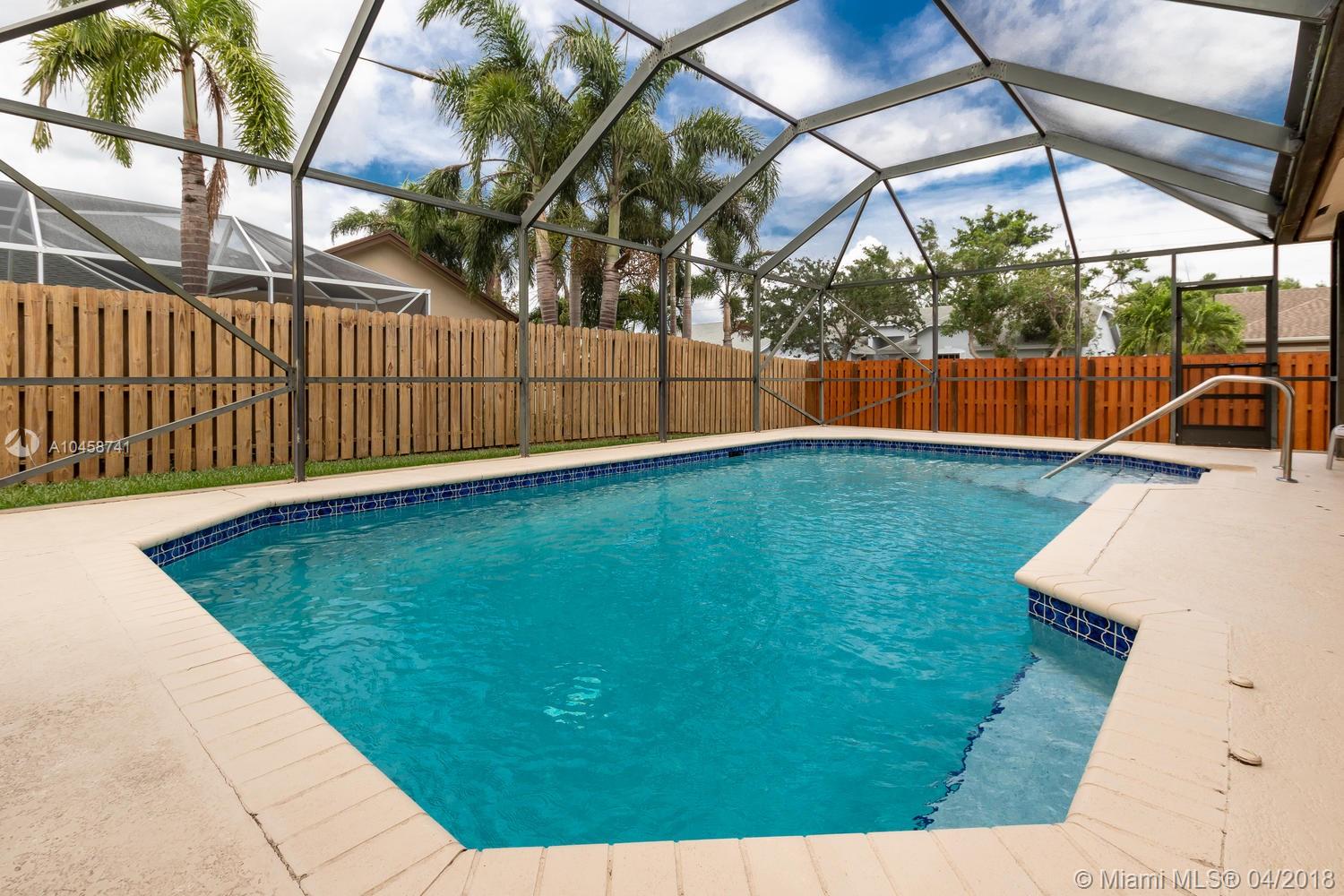 Meticulously kept inside and out 3 bed/ 2 bath pool home on a beautifully landscaped fenced in corner lot. Located in highly desirable New River Estates. Home features a Formal Dining, Living Room, Family room, Breakfast area and interior laundry room. Kitchen features a pass thru window to patio. Oversize master bedroom includes a 6x8 walk in closet. Tiled thru-out family room and kitchen. Newly installed laminate flooring in all bedrooms, living and dining room. Sliding tinted glass doors in family room and master bedroom lead out to relaxing screened in pool area. Home is located near major highways 595/ I-75 and Sawgrass Expressway. Home is located close to Weston, Cleveland Clinic, restaurants, shopping, parks and more. Zoned for Davie schools. This home will not last!