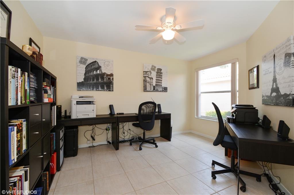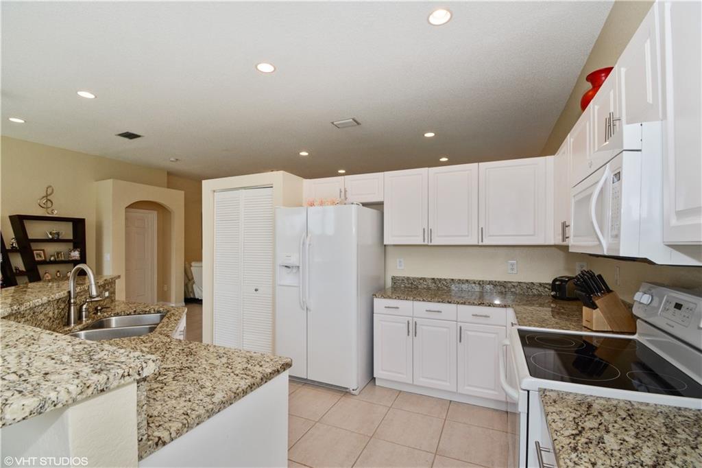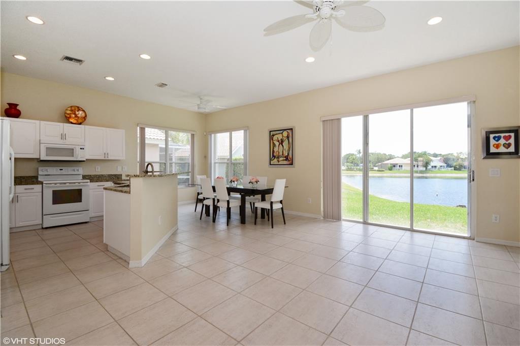 Beautiful wide lake views await you in this immaculate and upgraded home. Breathe in the serenity! The white gourmet kitchen with granite counter tops is a cook's delight. Beautiful flooring throughout. No carpet. French doors, plenty of closets and an open, spacious floor plan with a split bedroom plan. Luxurious master bath. Light and bright. Storm shutters. Lovely patio for relaxing with lake views. Manicured, gated community. Fourth bedroom being used as an office. Ideal location, shopping and dining.