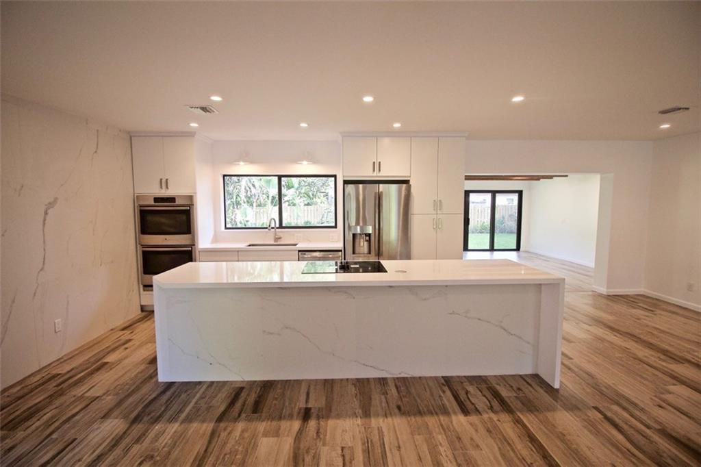 All new with high-end finishes. Large open kitchen with 11' cooking island and double ovens. Expansive bright and open spaces for living and entertaining in style. Add'l family room with wall of glass provides access to large, fenced yard with plenty of room for your dream pool. New wood tile throughout. New impact windows. New paver driveway. Small Placido Place neighborhood is a hidden gem. Minutes to all the trendy hotspots of Flagler Village, downtown, Wilton Dr, and the beach. A must-see.