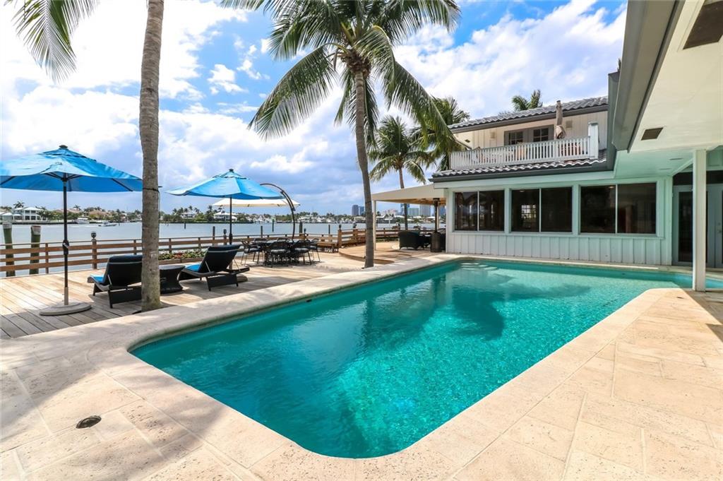 This island-feel home is nestled between the sparkling private beach of the exclusive Harbor Beach community and the bustling everyday boat parade of the Intercoastal Waterway. Features include an over sized deck, boat lift & dock, pool. Interior art, exterior art and all sculptures excluded. This home sits directly on the ICW with 120 ft of idle speed - no wake water for your boating and viewing pleasure. Beautiful sunsets and city views. Similar to a Point View.