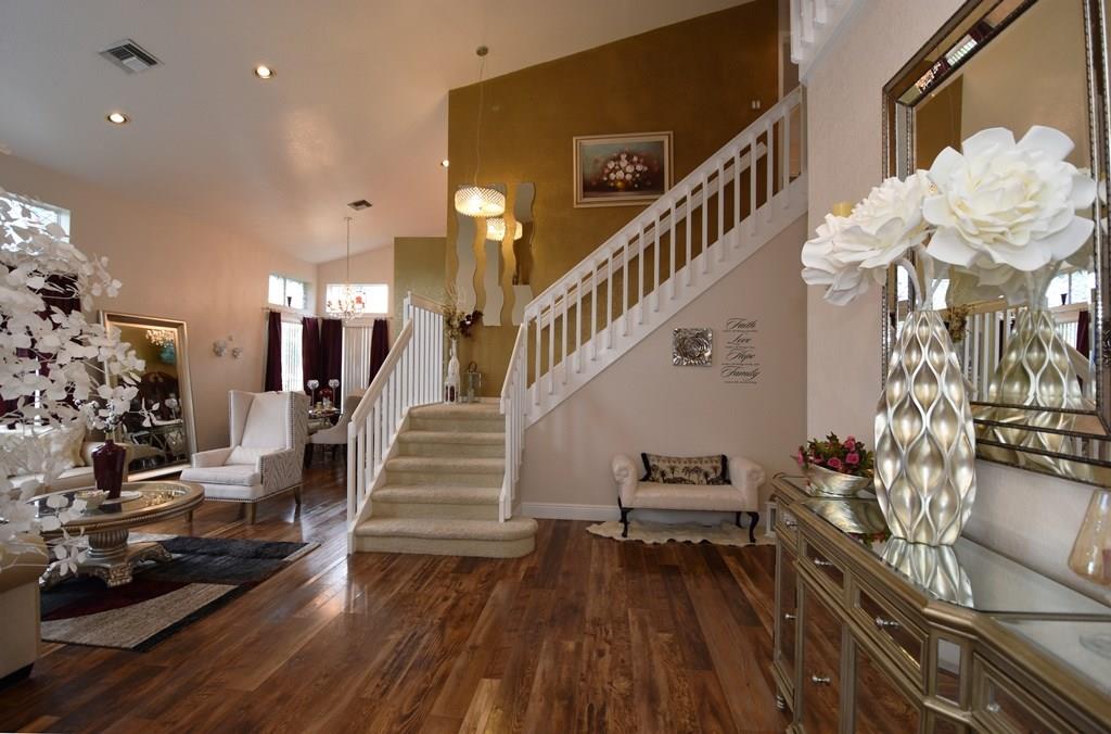 IF PERFECTION IS WHAT YOU ARE LOOKING FOR THEN THIS ELEGANT HOME IN THE GRAND PALM GOLF COMMUNITY IS IT***4 BEDROOMS & 3 FULL BATH, 2 OF WHICH ARE REMODELED TO PERFECTION PLUS 5TH BEDROOM WAS MADE INTO MASTER CLOSET***FRENCH DOORS FROM KITCHEN & FAMILY ROOM LEAD TO SCREENED POOL/SPA**FORMAL LIVING & DINING ROOMS, LARGE EAT IN KITCHEN WITH GRANITE COUNTERS & SS APPLIANCES**TILE & LAMINATE FLOORING THROUGHOUT THE SOCIAL AREAS**GORGEOUS LIGHT FIXTURES & FANS***UPDATED AC**24 HR GATED COMM**SPA HEATER AS IS.