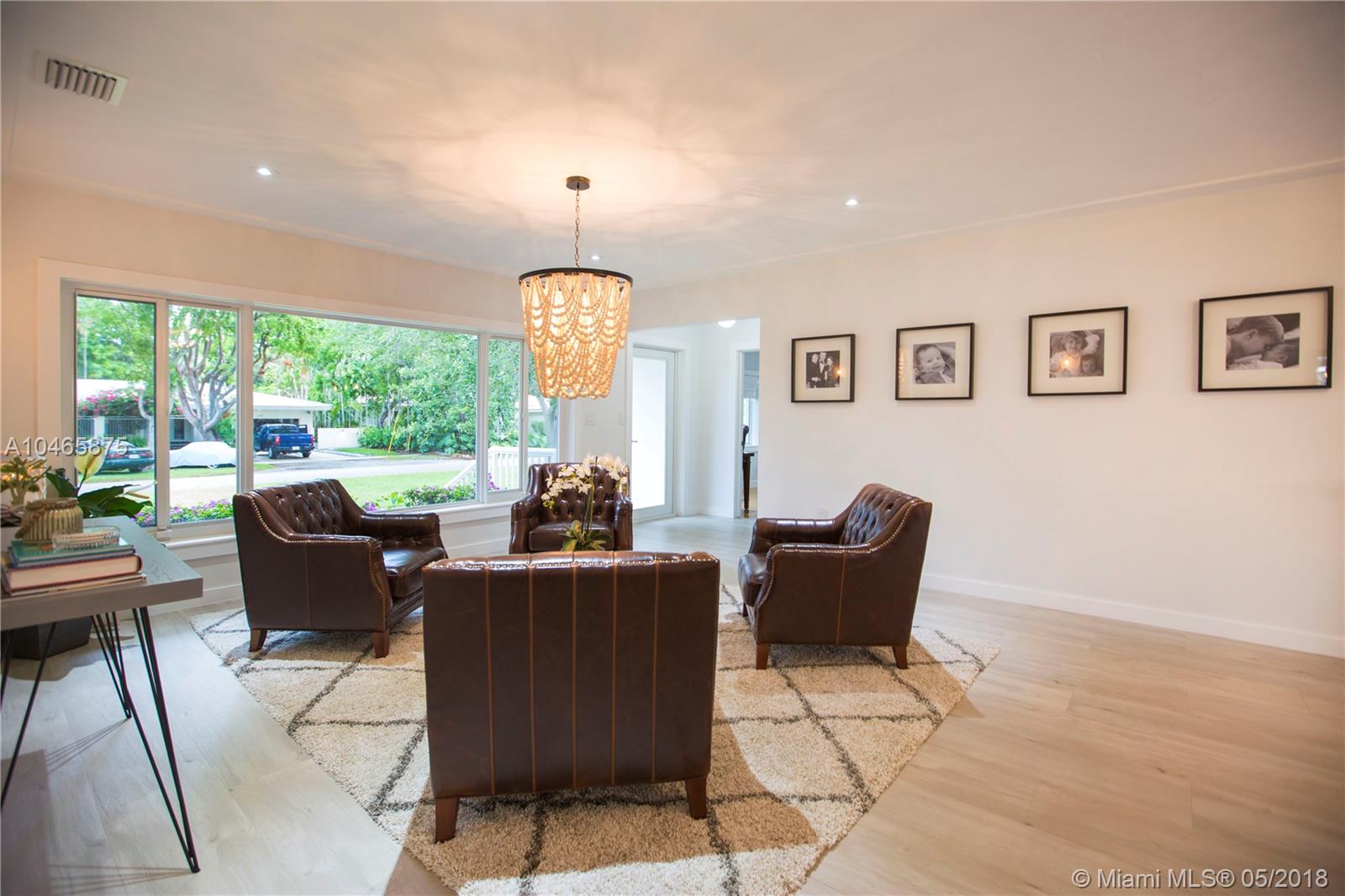 Beautiful Miami Shores Home. 4-bedrooms 3-baths and/or den. This corner home is freshly updated, with Impact windows, and room for a pool. The Master bedroom is on the opposite side of the other two bedrooms, offering plenty of privacy. The 4 bedroom could be used for in-laws/guest. The open plan kitchen has stainless steel appliances and plenty of beautiful quartz counter space, as well as solid wood cabinetry and breakfast counter. Living room and dining, are airy and open to the back yard through an elevated deck that is perfect for grilling.This is a very exclusive and sought after neighborhood, and this beautiful home has lushes landscaping.