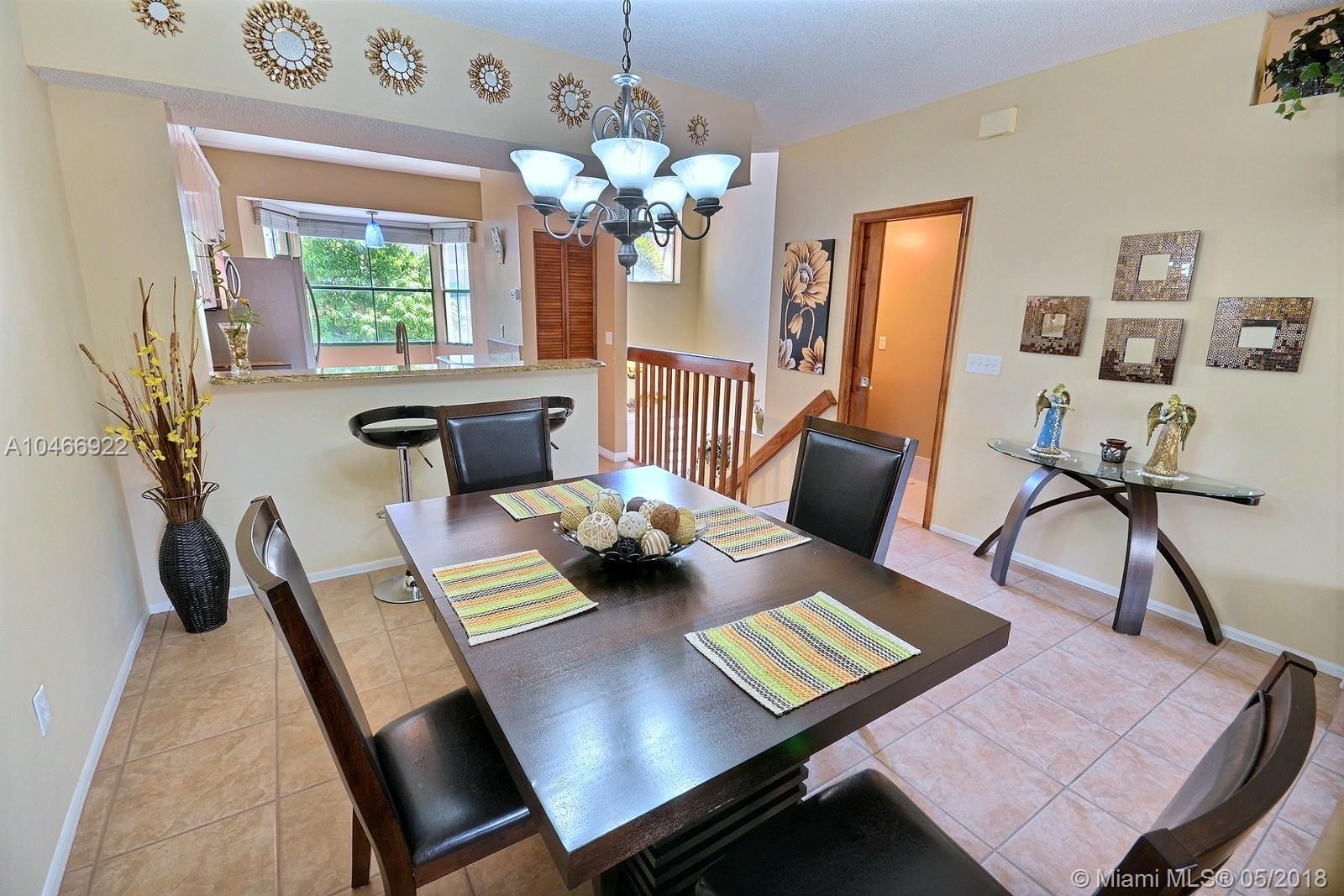 FABULOUS TRI-LEVEL TOWNHOME ON PREMIUM LOT W VIEWS OF THE POOL FEATURES 4 BED, 2,5 BATHS & ONE CAR GARAGE. GREAT FLOORPLAN WITH MASTER SUITE ON FIRST LEVEL W A WALKOUT TO FENCED PATIO; MIDDLE LEVEL HAS UPDATED KITCHEN W STAINLESS STEEL APPLIANCES & ELEGANT FIXTURES, OPEN TO DINING AREA AND LIVING AREA. UPSTAIRS LEVEL 3 BEDS AND FULL BATH. SPACIOUS HOME IS PERFECTLY LOCATED NEAR THE SAWGRASS MILLS MALL.