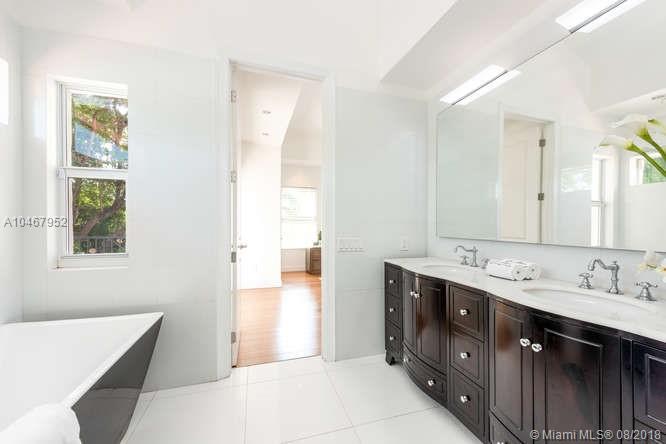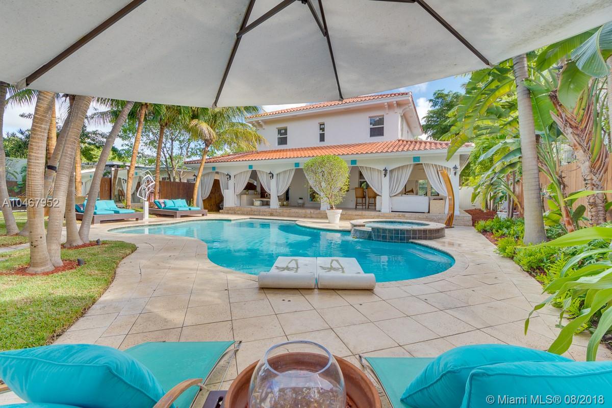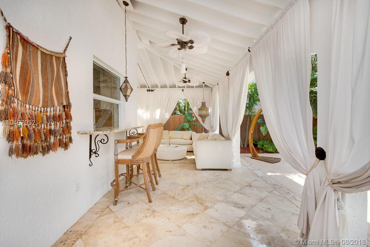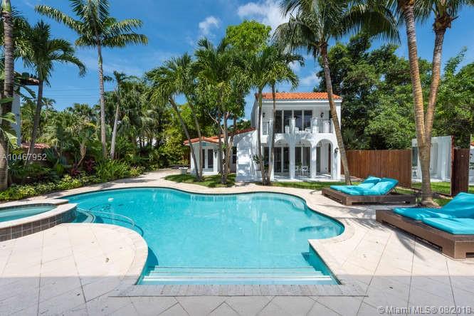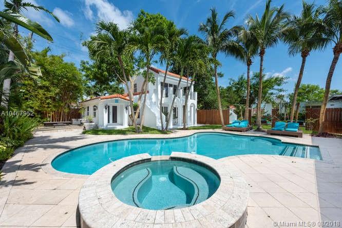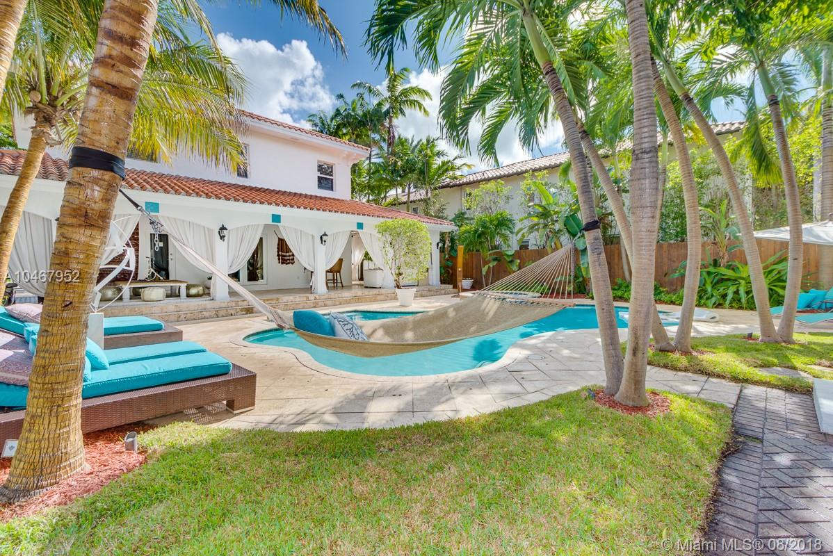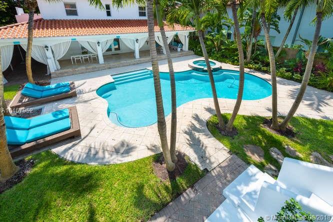 Beautifully Renovated Mediterranean Home w/2000sf of outdoor living spaces. Resort like pool, spa & patio w/palms, bamboo, mango trees & fire pit! Main home has 4 BR/4.5 BA. Gleaming marble & bamboo floors. Top-of-the-line appliances. Open living spaces. Spectacular master suite w/15' ceilings. Separate Guest house-2 covered terraces w/fold-away doors bringing the outside in! 1 BR suite upstairs w/sep access & 1 BR apt w/kit on ground level.Community Park coming across street.Walk to beach&Lincoln Road.