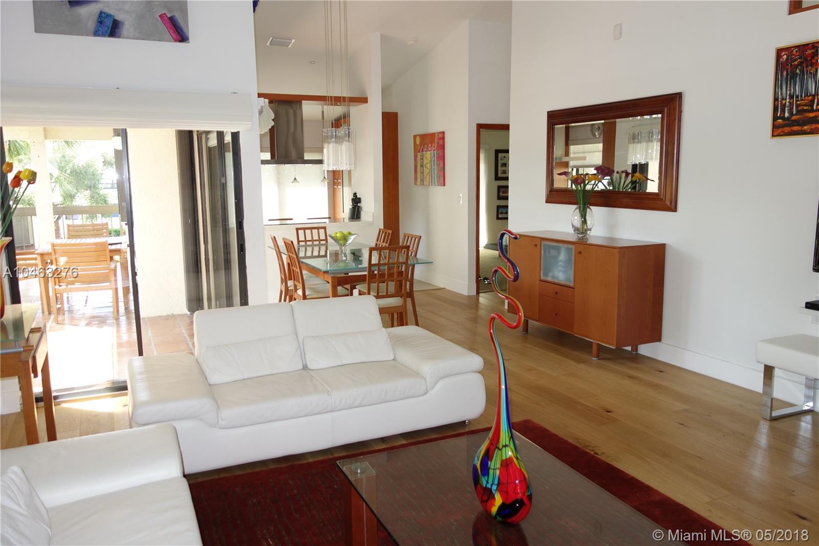 Beautiful modern 2/2 + den townhouse in a guard-gated community. Luxuriously upgraded and ready to move in. Marble stairs and hardwood floors throughout. High vaulted ceilings with skylights and wraparound balcony allow lots of natural light in. Open living room, dinning room, and kitchen provide spacious social area. Designer eat-in kitchen with top-of-the-line Kitchenaid Architect-II stainless steel appliances, built-in microwave and convection ovens, solid wood cabinets, and quartz countertop. Ample master and second bedrooms. Comfortable closed den. Walk-in closet. Master bathroom with glass-enclosed shower and large tub. Second/guest bathroom has Italian decorative tile, modern tub, floating vanity. Recessed lighting and beautiful light fixtures throughout the property.