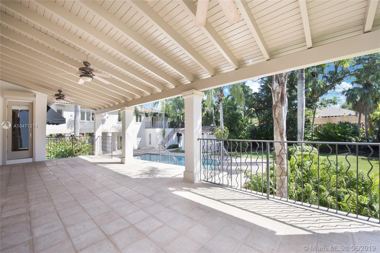 Best value for oversized 22,712 sf lot. Large living spaces with high ceilings, covered terraces, spacious yard area, gazebo, cabana bath, and large pool and deck. Living, dining and bright kitchen and breakfast room, all open to covered terrace and pool deck. Mature trees and landscaping. 3 plus car garage, circular front driveway and side drive offer ample parking.. LA Sq ft is adjusted as per Miami Dade Property Tax Appraiser. Guard gated entrance and Coral Gables Police patrol (special tax district), voluntary HOA with tennis courts.