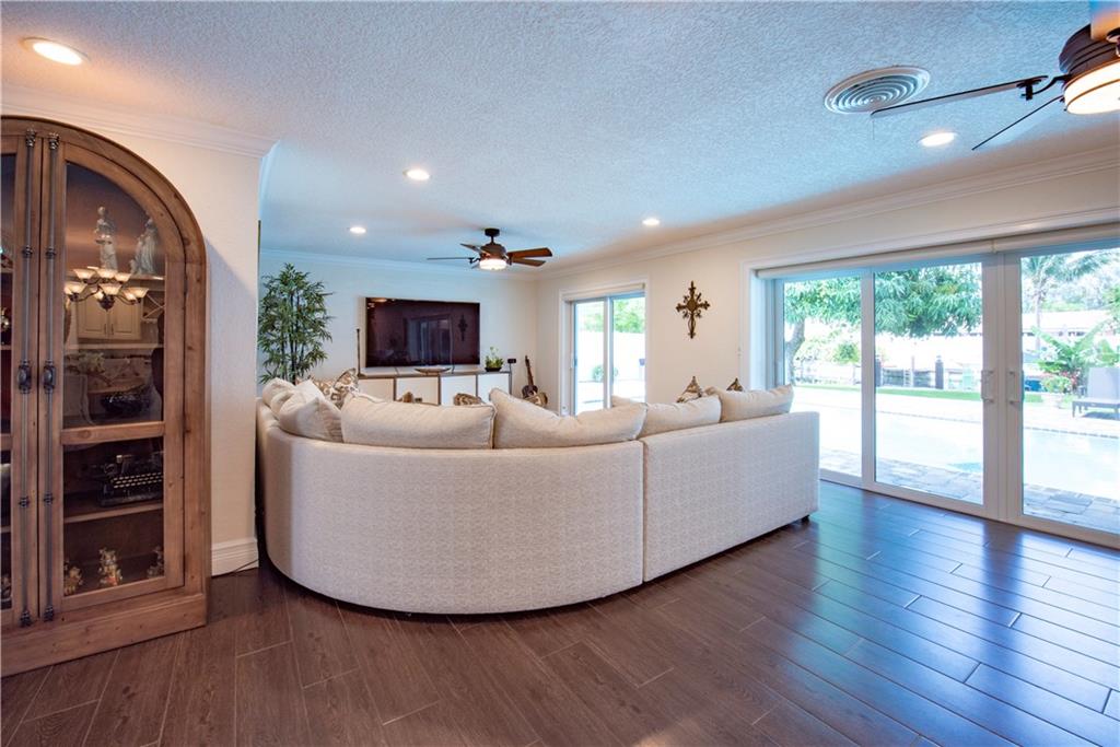 Stunning, completely updated in sought after Coral Ridge Isles! New open concept chef's kitchen w/gas range cooking island, top stainless appliances & breakfast bar for 8. New porcelain plank floors continuous throughout. Sliders & French doors seamlessly blend interior w/outdoor living. New triple pane impact doors & windows. New plantation shutters, custom shades, crown moulding, & recessed lights. New pool, pavers & PVC fenced yard. New A/C. 2 car garage & indoor laundry. You won't find a better home!