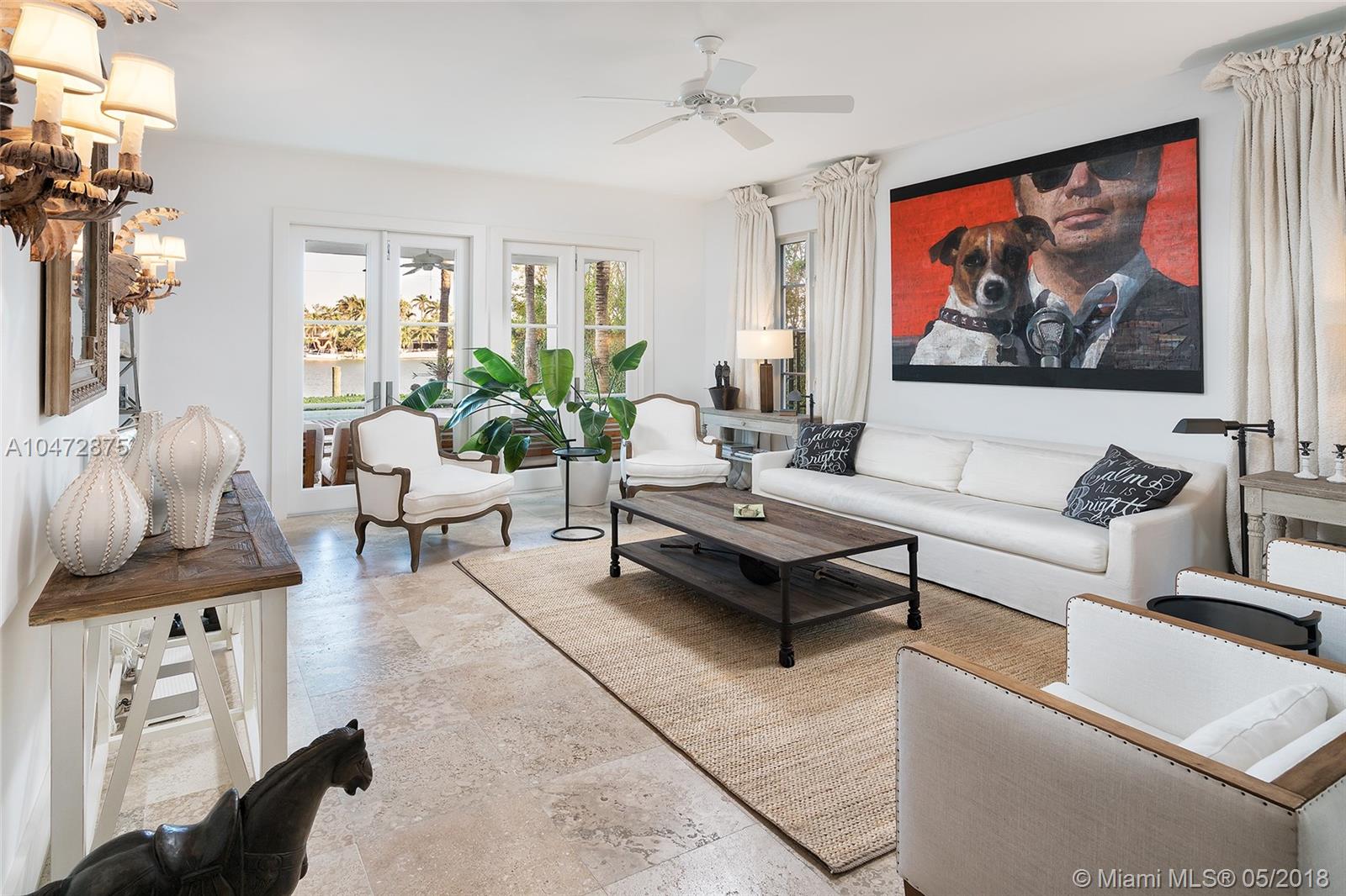 This stunning two-story waterfront home on coveted Venetian Islands is the perfect 10! Completely renovated it features 5,641 sqft of impeccably designed interior spaces including 5 bedrooms, 6.5 bathrooms, 2-car garage under air-conditioning PLUS an attached 1 bedroom/1 bathroom guest/nanny/in-law quarters w/ independent entry. The gourmet kitchen sports top of the line appliances while the second-floor master suite features generous walk-in closet, his and hers bathroom, and secluded private balcony overlooking the tranquil waters. The private dock, 60 feet of sparkling waterfrontage, covered outdoor terrace, heated pool, tons of natural light, and proximity to Miami International Airport, Downtown, and Lincoln Road all make this an exquisite oasis!