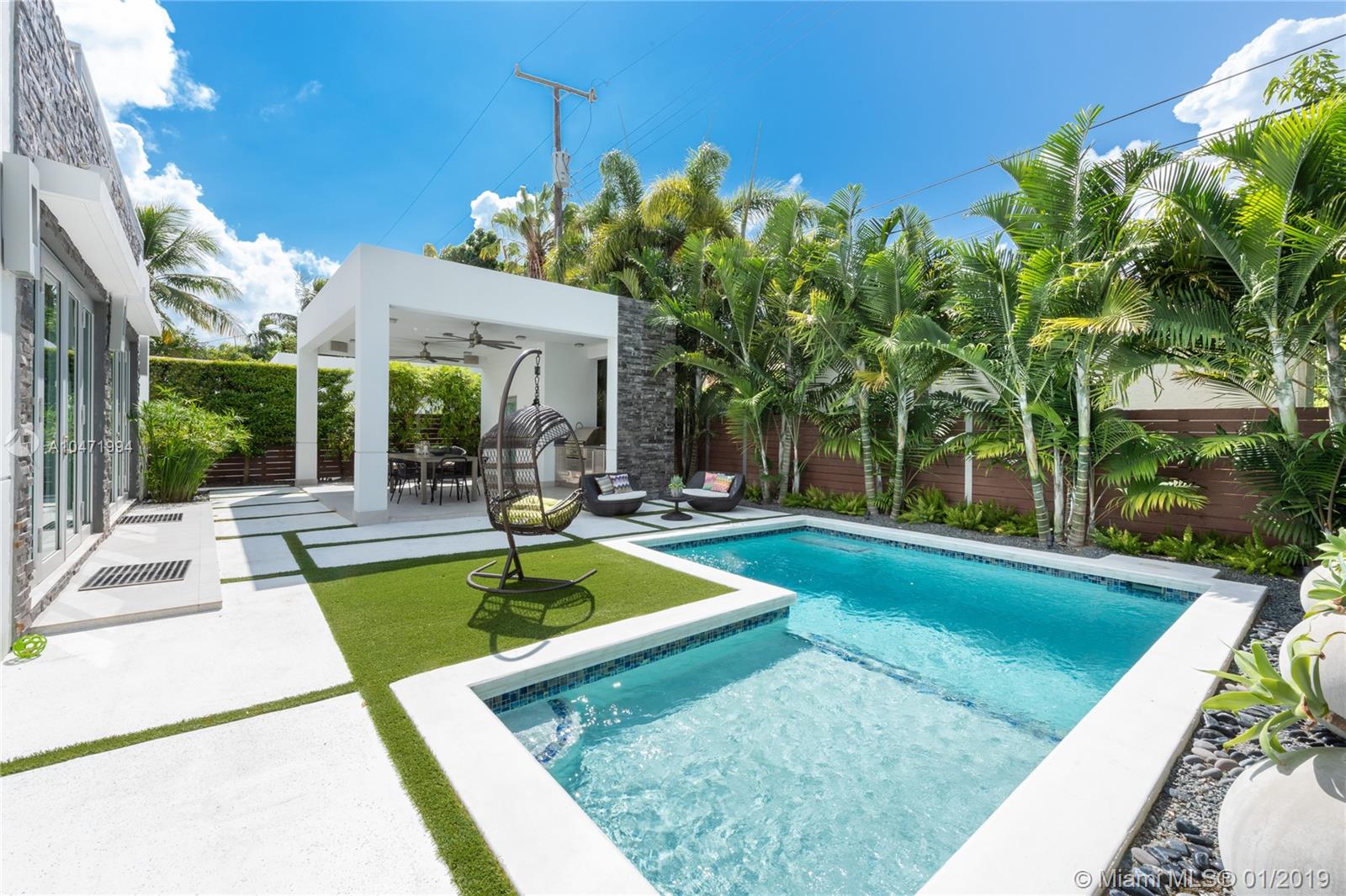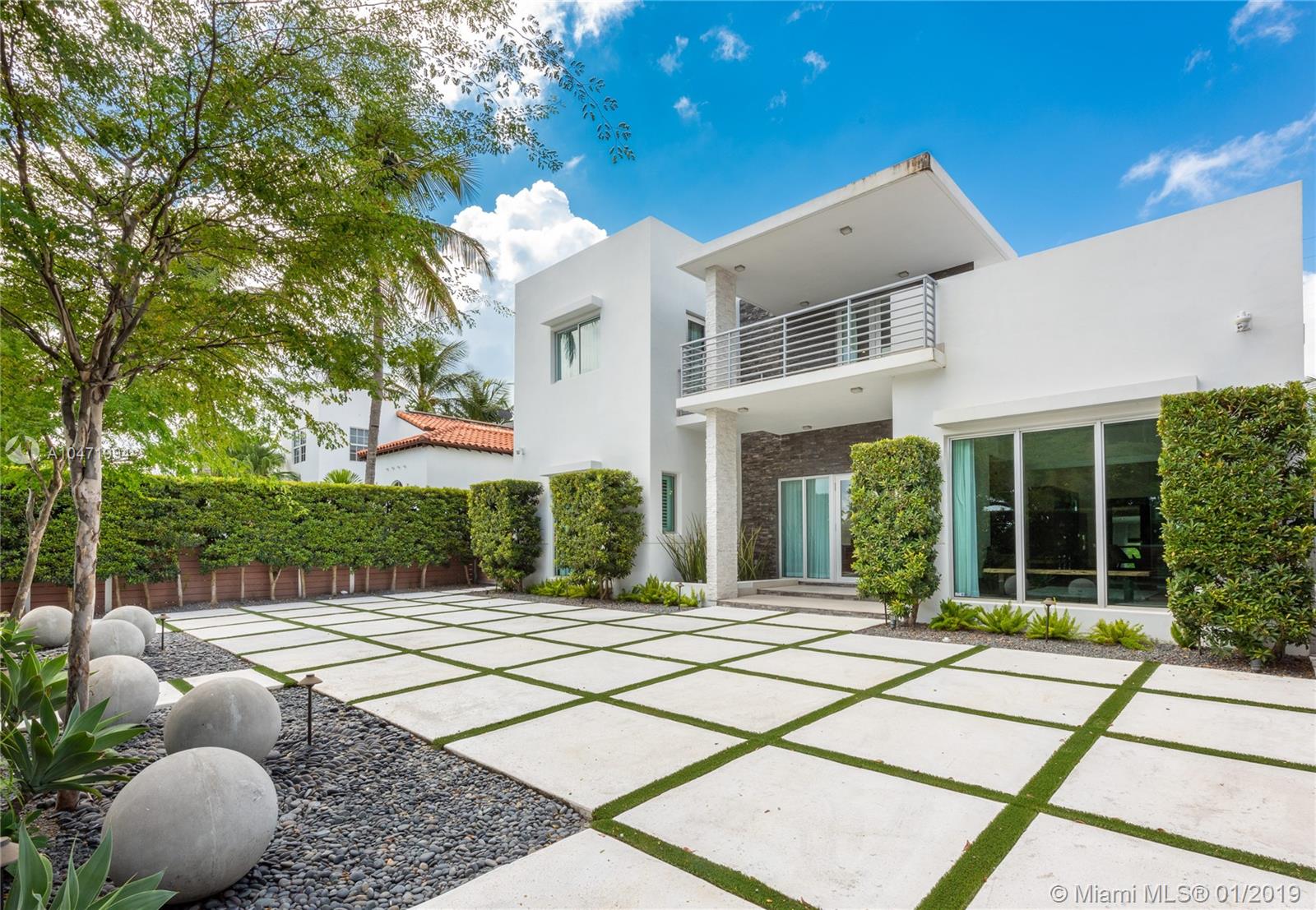 Completely rebuilt 2-story modern home in the heart of South Beach and across the Miami Beach Golf Course! Inside, a formal entry foyer will greet you and guide you to a large office/gym to the right, and a master suite with a large bath and 2 walk-in closets to the left. Straight ahead, a sun-drenched living room with an open kitchen facing the lush backyard perfect for indoor/outdoor entertaining. Upstairs, 3 bedrooms, 2 baths, 2 large terraces, and golf course views. Backyard has a heated pool, cabana with a summer kitchen, and a full cabana bath. Features: sound system, security cameras, 10-ft ceilings, porcelain floors, spacious driveway. This gated luxury home is walled and secluded with manicured landscaping for extra privacy and security. Near Lincoln Road Mall and Sunset Harbour.