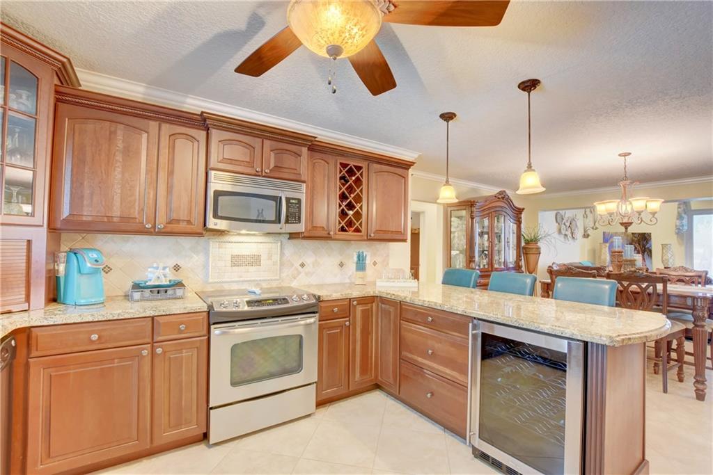 Top rated schools!! Recessed lighting the knockdown texture walls & ceiling to the crown molding & the updated fans/lights. The kitchens/baths have been completely remodeled w/granite in the kitchen & marble counters/showers in the baths. The tray ceiling in the bathroom adds even further elegance! Head out back through the dustless blind french doors & sit at your tiki bar with kitchen while friends enjoy your saltwater & heated pool w/fountain! Later, use your 15k lb boat lift & head into the ocean!