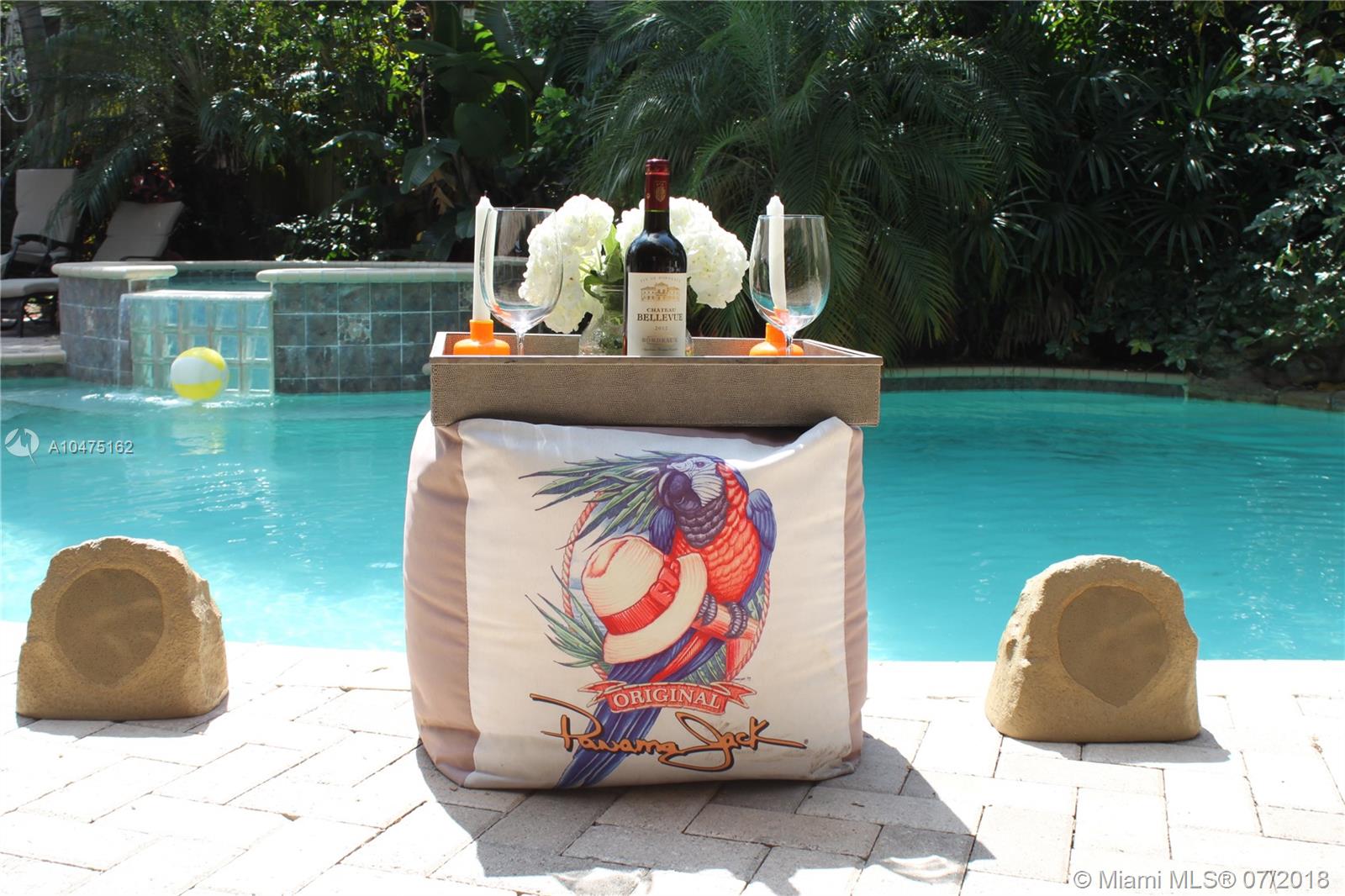 Charming 3/2 CBS construction bungalow with new aluminum roof and enormous pool with tropical backyard - including a Tiki Hut. Updated kitchen and baths and new diamond Brite finished pool with rock waterfall. Completely private tropical escape. 6 Parking spaces. Natural Gas. Hurricane Windows.