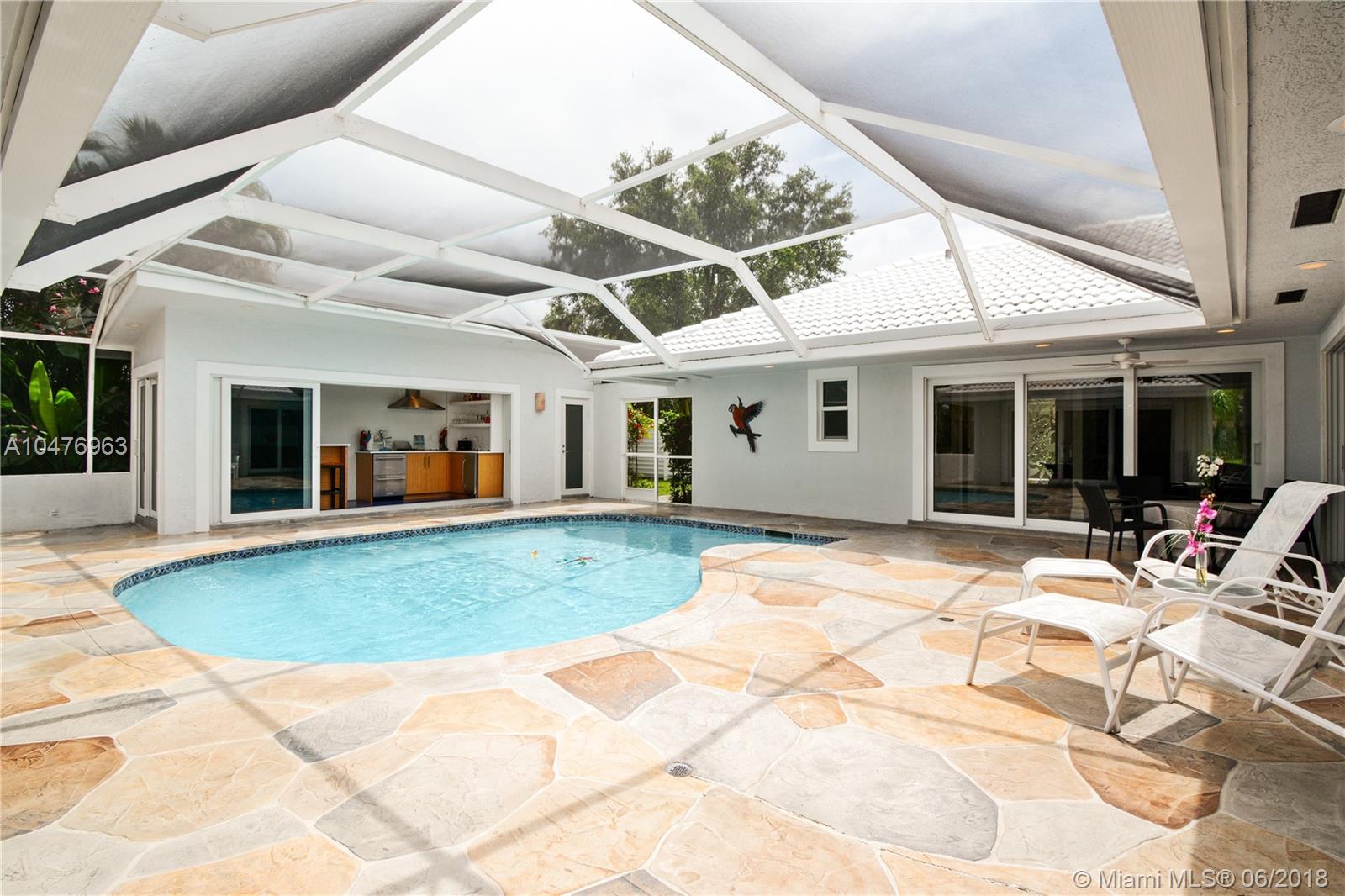 Your dream home awaits! No expense spared in renovating this 3 bedroom 3.5 bath home. Formal living room and dining room, family room. Fantastic kitchen with top of the line appliances. Outstanding master suite. Bedroom off foyer entry has private bath. Heated salt water pool with deck jets. Enclosed cabana with built in grill, refrigerator, free standing ice maker and bar counter and stools perfect for casual entertaining around pool/patio. Outdoor shower. Lush landscaping. A special home in a special neighborhood. Refer to addendums for complete list of improvements. Please contact LA to show, must accompany. Resident realtor will meet you anytime.