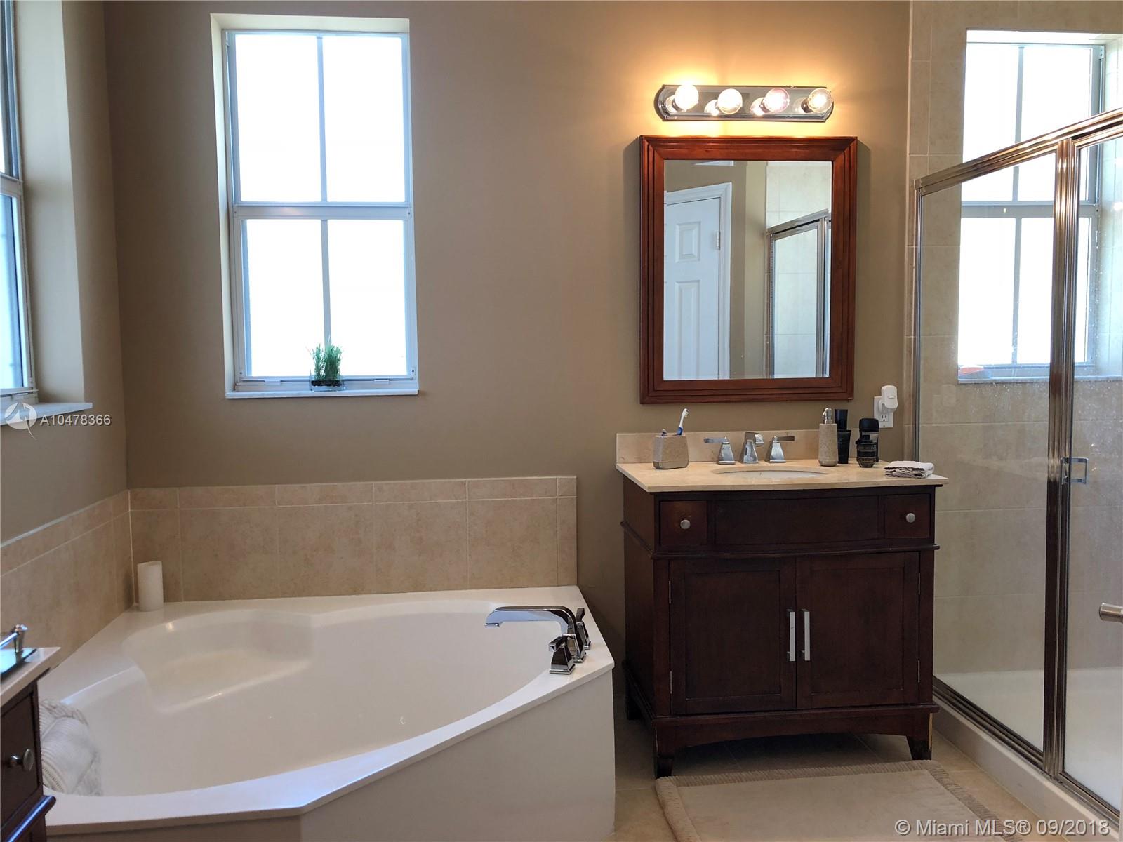 Beautiful lakefront townhouse in desirable Reserve at Doral East. This corner model has an exceptional open-layout featuring 4 spacious bedrooms, 3.5 bathrooms, 2 balconies and a 2 car garage. Upgrades include marble flooring throughout (carpet in bedrooms), stainless steel appliances, granite countertops and accordion shutters. Very well kept gated community with lush landscaping, park and clubhouse with pool, gym and social room.