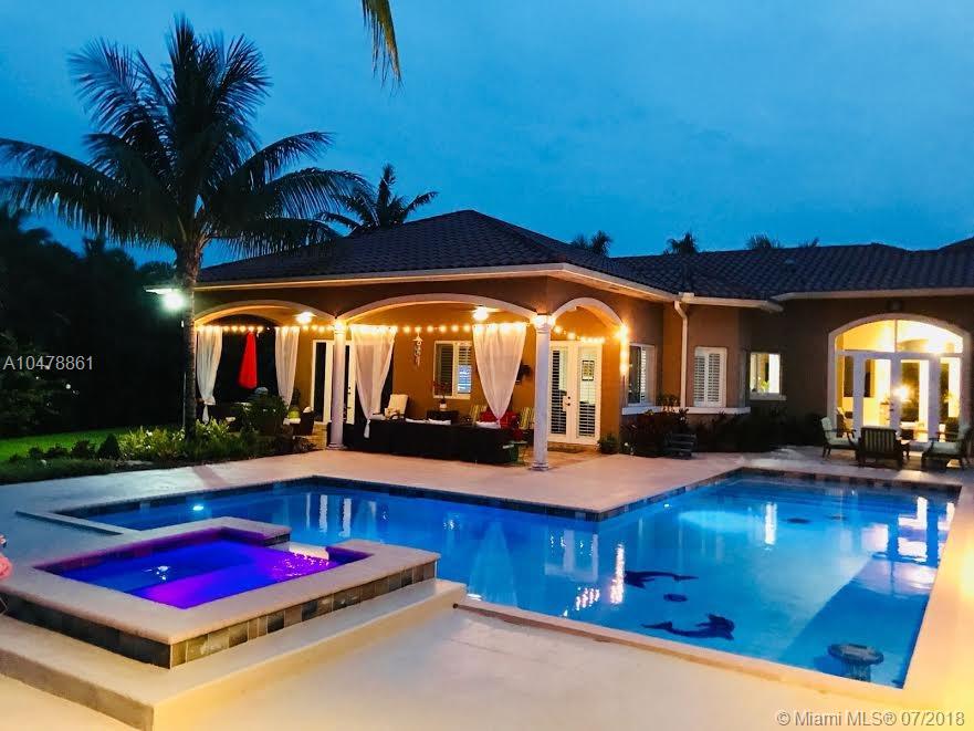 Exquisite home in Southwest Ranches. Electric Gated entry opens to a wide circular drive way with undercover porch to a beautiful entry with glass doors. Travertine floors, Impact windows and doors and plantation shutters throughout the house. Kitchen enhanced with high quality wood cabinets with counter for seating. Granite countertops, cook Island and high end steel appliances. Huge master bedroom with seating area and 2 built in walking closets, billiard room, office/Den and lots of storage. Fenced back yard is beautifully landscaped surrounding an inviting pool and spa. Outdoor kitchen will full bathroom and entertainment area with TV/speakers. Country living in luxury. Call today for an appointment.