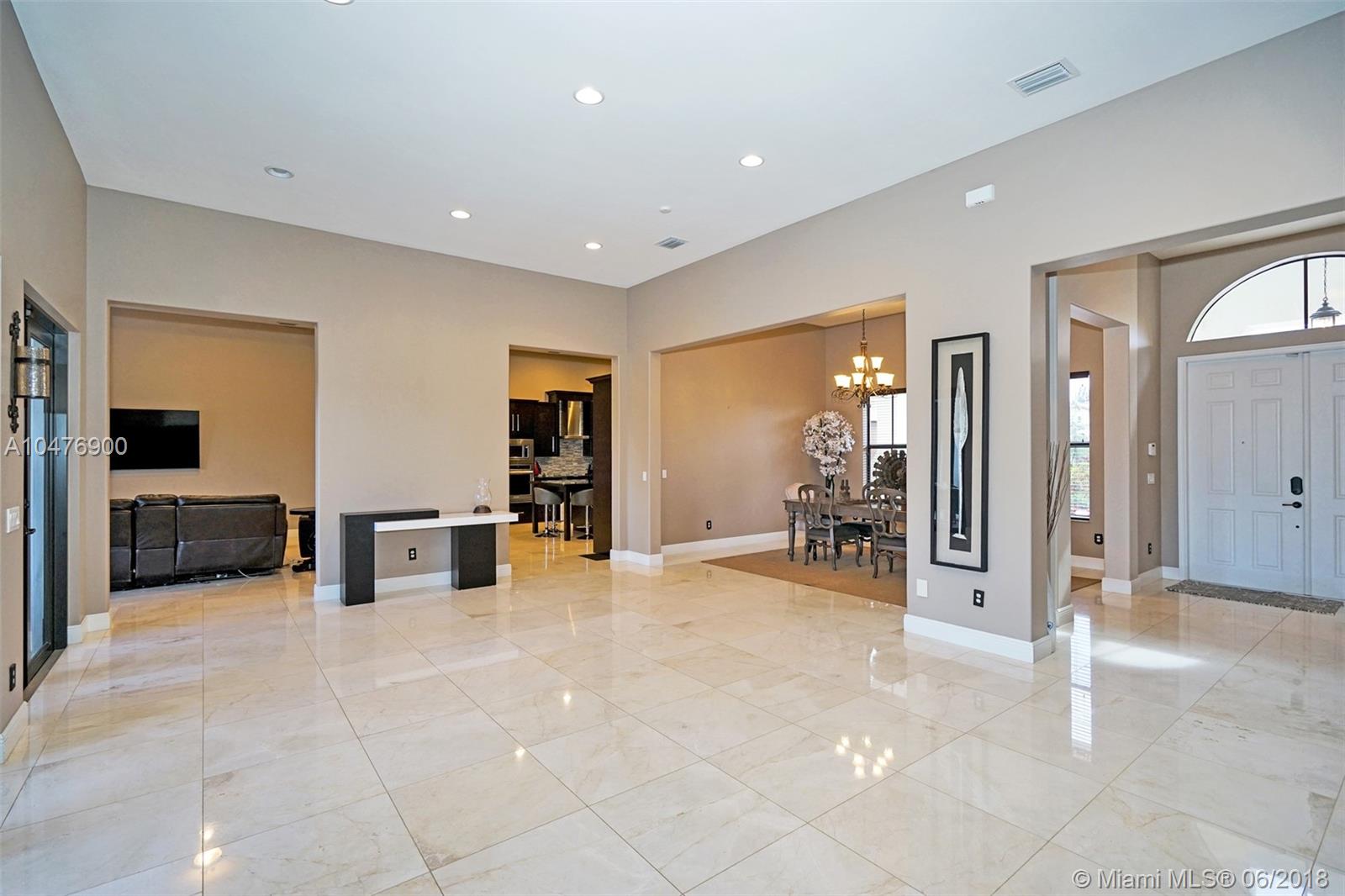 Magnificently Upgraded 1-Story home in recently built Parkside Estates. 5 Bedrooms & 4 Full Luxury Baths with glass tile, 24x24 Luxury Marble Flooring, Hi-Hat lighting everywhere, built-in Surround Speakers, Gourmet Kitchen with Granite Counters & High-end Stainless Appliances with Custom Italian Cabinetry, Deep freeze fridge, Large breakfast area, Surveillance system, Custom pool with salt water system and heater, Oversized 35,000 sq ft lot with high-end outdoor lighting decor. This outstanding estate is perfect for family and entertainment.