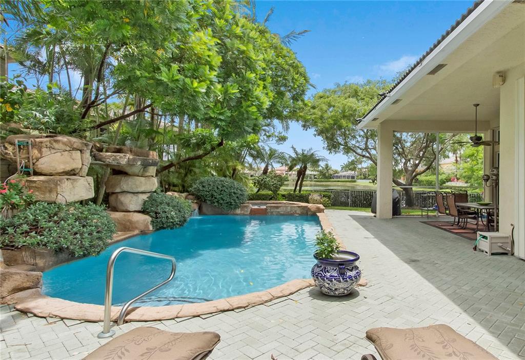 SPECTACULAR POOL HOME ON A BREATHTAKING WATER LOT. 5 BEDS, 4 FULL BATHS & 3 CAR GARAGE. DRAMATIC ENTRANCE W/ CUSTOM GLASS FRONT DOORS OVERLOOKING LAKE. KITCHEN HAS UPGRADED WOOD CABINETS, SS APPLIANCES & GRANITE TOPS. SPACIOUS MASTER W/ COFFERED CEILINGS, CROWN MOULDING, HIS & HER CLOSETS. THE MOST AMAZING & LUSH ROCK WATERFALL POOL & SPA YOU HAVE SEEN! LARGE FORMAL LIVING, DINING ROOM & FAMILY ROOM. BREAKFAST AREA & A BUTLERS PANTRY W/ BUILT IN WINE COOLER. MOSQUITO MIST SYSTEM, CUSTOM TREATMENTS!