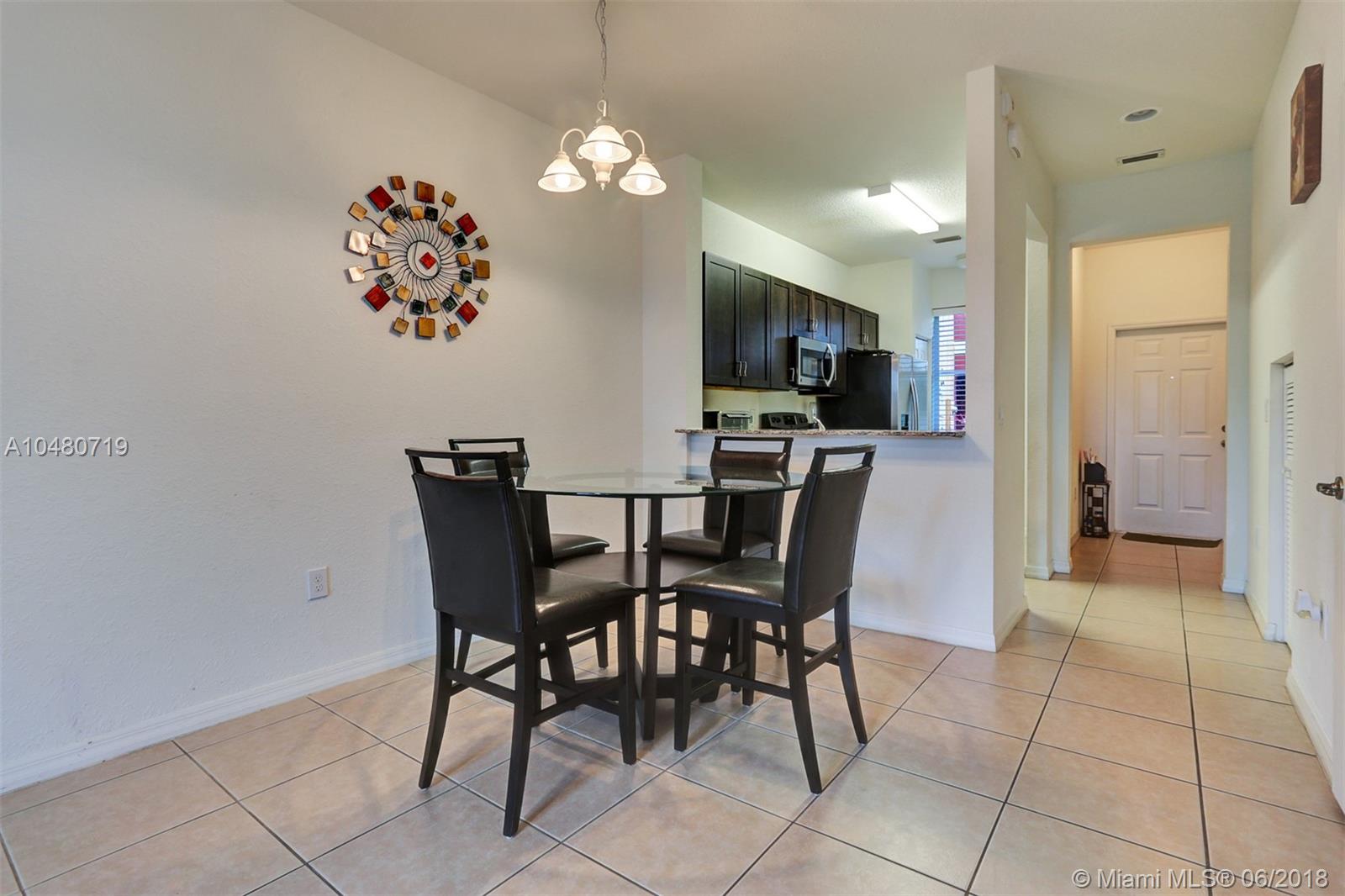 Hurry and see this beautiful 2/2.5 Townhome! Built in 2014, which is the newest section in Village Walk, a gated community with security guards. High ceilings, large open kitchen with gorgeous granite countertops, Espresso cabinets, and new Stainless Steel Appliances, open floor plan, large Master Bedroom with tray ceilings and a walk in closet. Private backyard space with new greenery. Additional storage space and custom hurricane shutters included. Conveniently located minutes from major highways (turnpike, I-75, I-95, Palmetto - 826), Pembroke Lakes Mall, Shoppes at Pembroke Gardens, Walmart, Publix, and numerous popular dining options. Impeccable home and priced to sell!