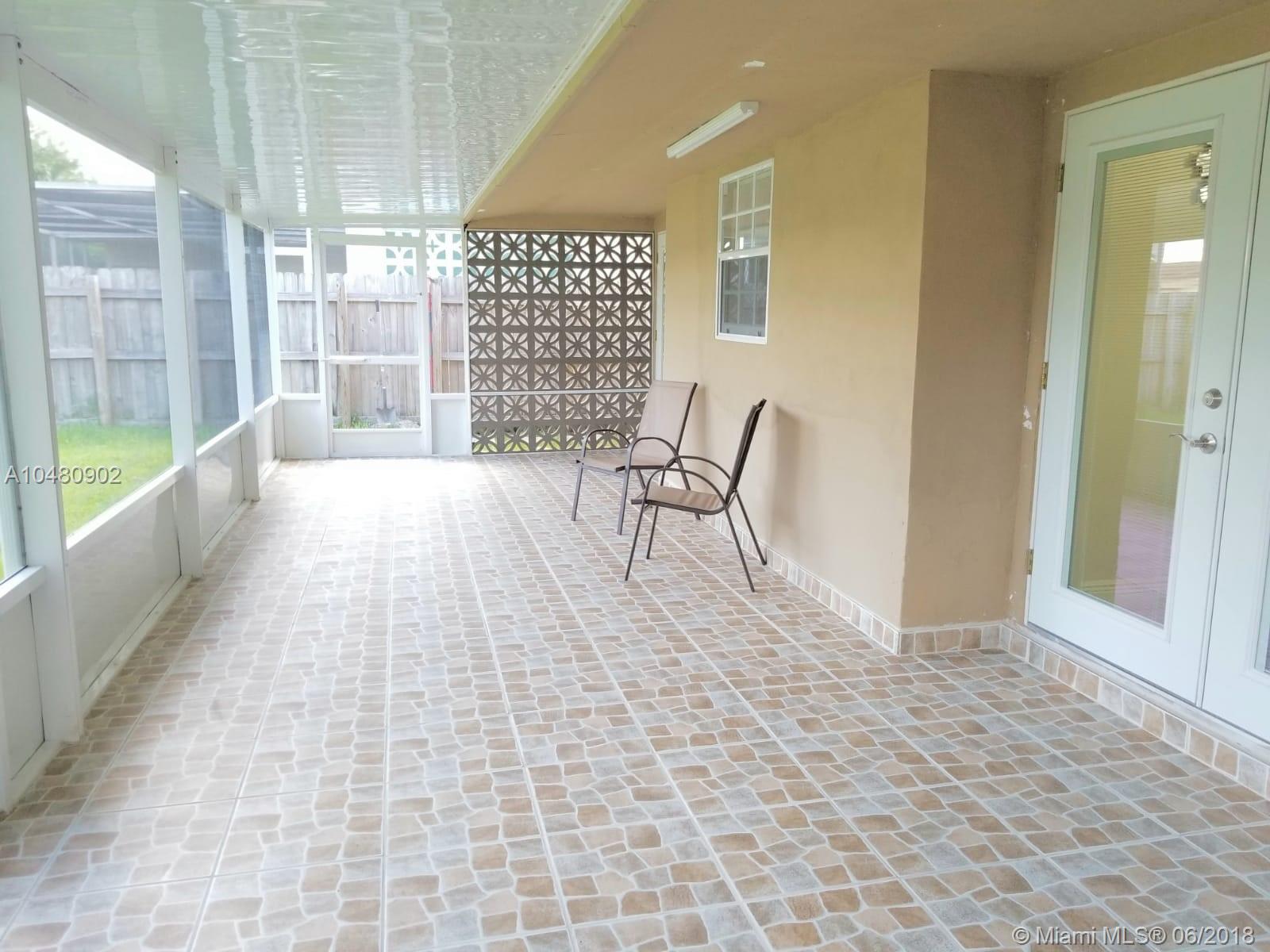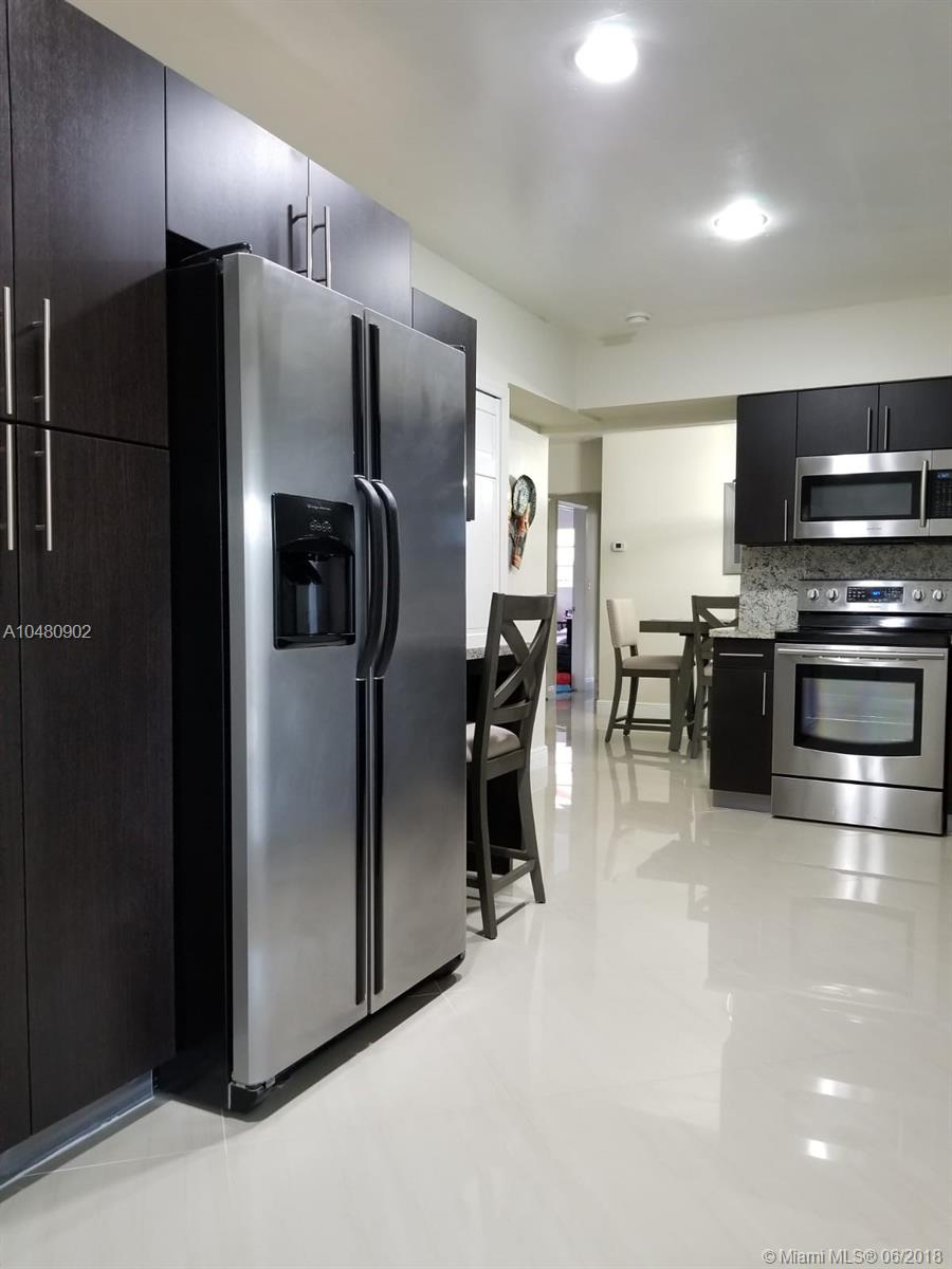 Beautifully renovated two-bedroom, one-bath ranch-style home that has all the upgrades you're looking for! Brand new dark-wood kitchen with granite countertops that features a small office nook, Samsung stainless steel appliances, pantry, and ample counter space. Gorgeous creme porcelain tile floors are found throughout the residence and wood floors in the bedrooms. The formal dining room and living room area offer plenty of space to host family gatherings. Double French doors lead to a large screened-in patio area and an expansive yard with a lush mango tree and plenty of room for a pool. The large circular driveway has enough room to park several cars. Other highlights include a recently replaced A/C and easy access to the Turnpike and so much more!