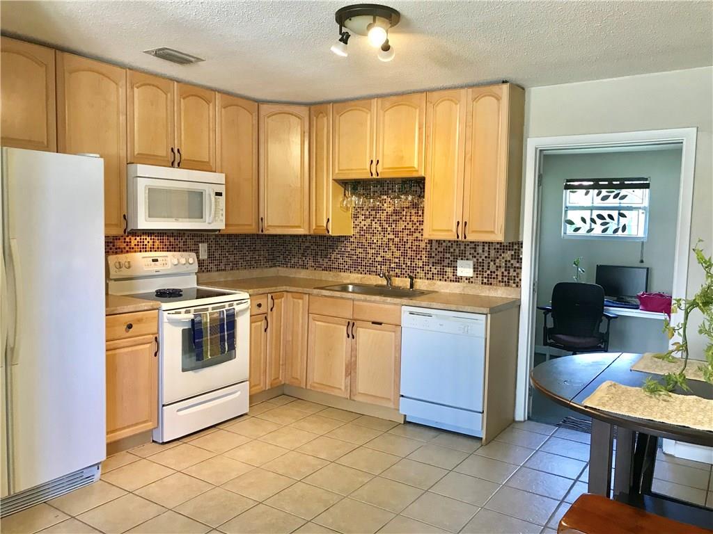 Cute as can be 2/1 in great little hidden gem of a neighborhood! All ages welcome in this centrally located community. Updated kitchen and bath, panel doors, hurricane impact windows , AC only 2 years old and updated electric- Great enclosed bonus room in the back with inside washer and dryer laundry area. Low maintenance fee of $113.00 mo includes lawn front and back, painting every 5 years FREE GOLF and pool and clubhouse. Did I mention FREE GOLF?!