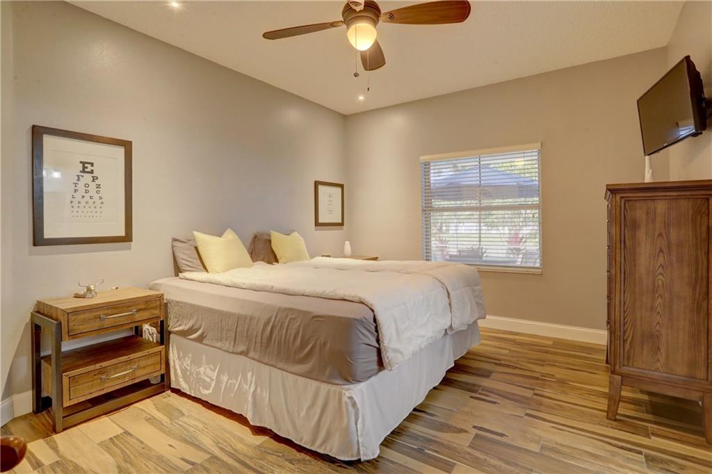 Renovated, waterfront, 1-story, 3-bed, 2-bath, 1-car garage home located in gated Chapel Cove/Chapel Trail. Kitchen features quartz countertops, white wood cabinets, Maytag stainless appliances, filtered water dispenser, recessed and pendant lighting. Master bedroom features a walk-in closet, wood-look tile for a modern touch, easy cleaning and durability. Modern master bath has a white wooden vanity with gorgeous stone countertop and walk-in shower. FHA/VA OK and Inspected. Large utility room with abundant storage and newer Maytag washer and dryer. Home has living room plus den and space for in-kitchen dining. HOA fee includes cable, internet and lawn watering. The community has a pool and play area for children.