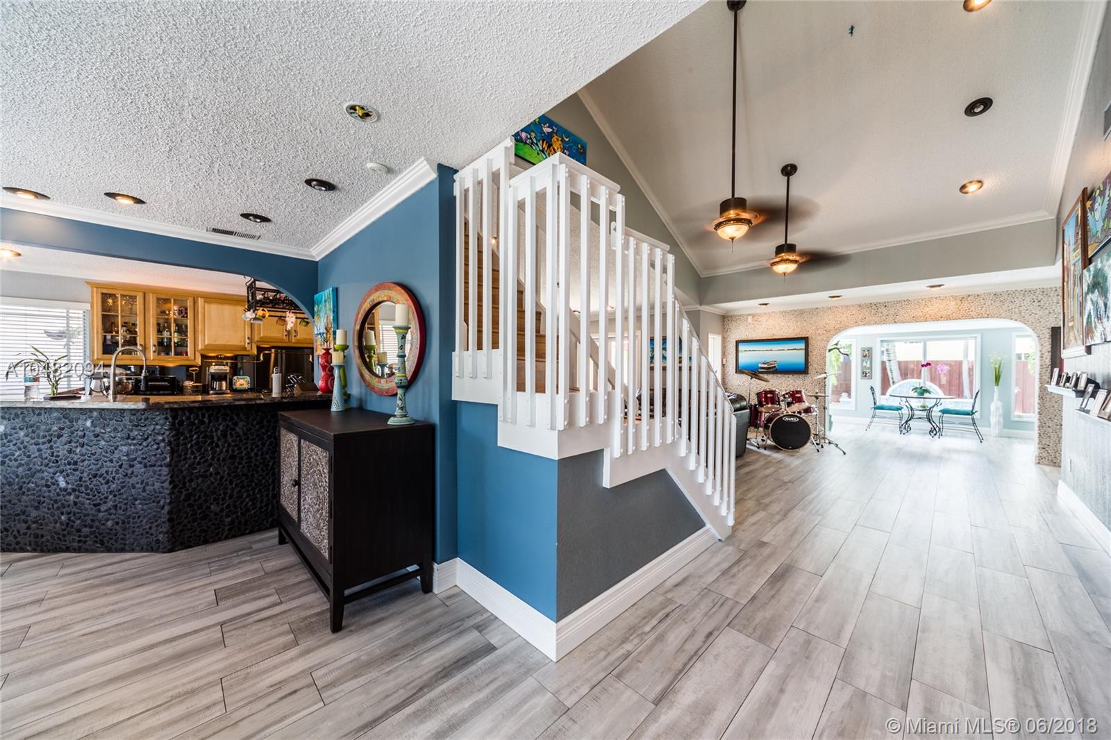 You'll surely fall in love with this gorgeous remodeled corner home! Amazing open floor plan design with vaulted ceilings for the whole family to enjoy. Great kitchen with lots of cabinet space, stainless steel appliances including a gas stove. A chef''s dream! Spacious first floor master suite has remodeled, dual vanity sinks and walk in shower and tub. Other features include, impact windows throughout the house, custom closets, bonus room and much more! Step outside and enjoy your own private tropical oasis in your own backyard. Come see it for yourself!