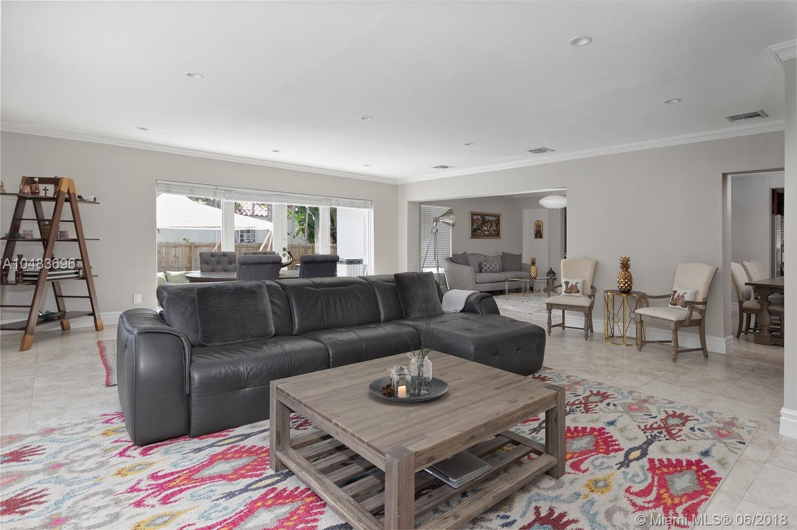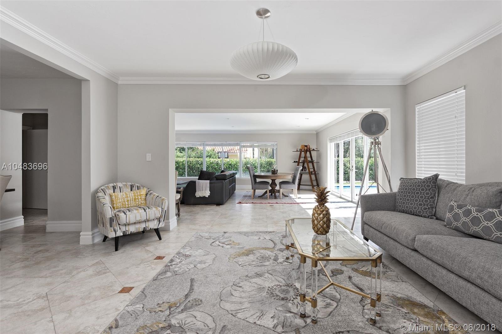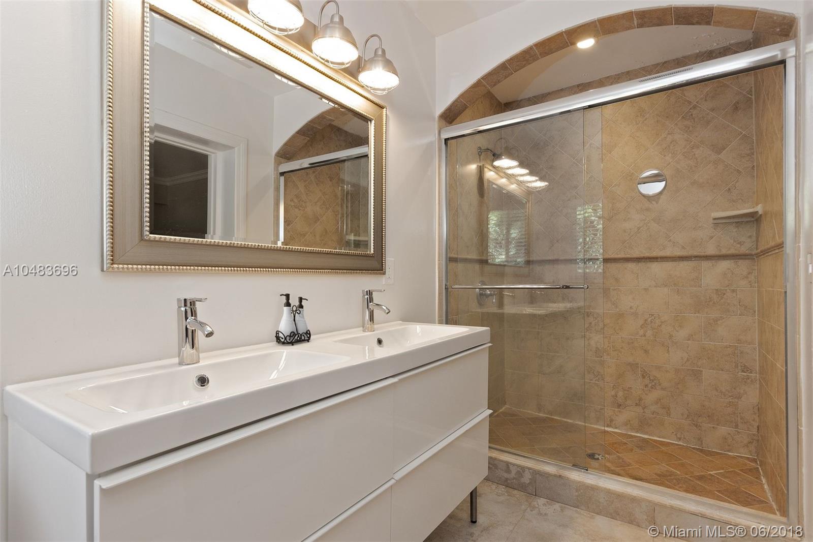 Beautiful four bedroom three bath home in Miami Shores with a big private backyard and beautiful pool. Covered front porch. Open floor plan with natural light, amazing spaces for entertaining. Great views of the pool and Garden. Nice bedroom split, two master bedrooms. Both master bedrooms have big closet. Master Bathroom has oversized shower and double sinks. Huge eat in kitchen with stainless steel appliances. New roof, new central air conditioning, storm shutters for all the windows. Alarm system and irrigation system. Nice quiet street with mature landscaping.