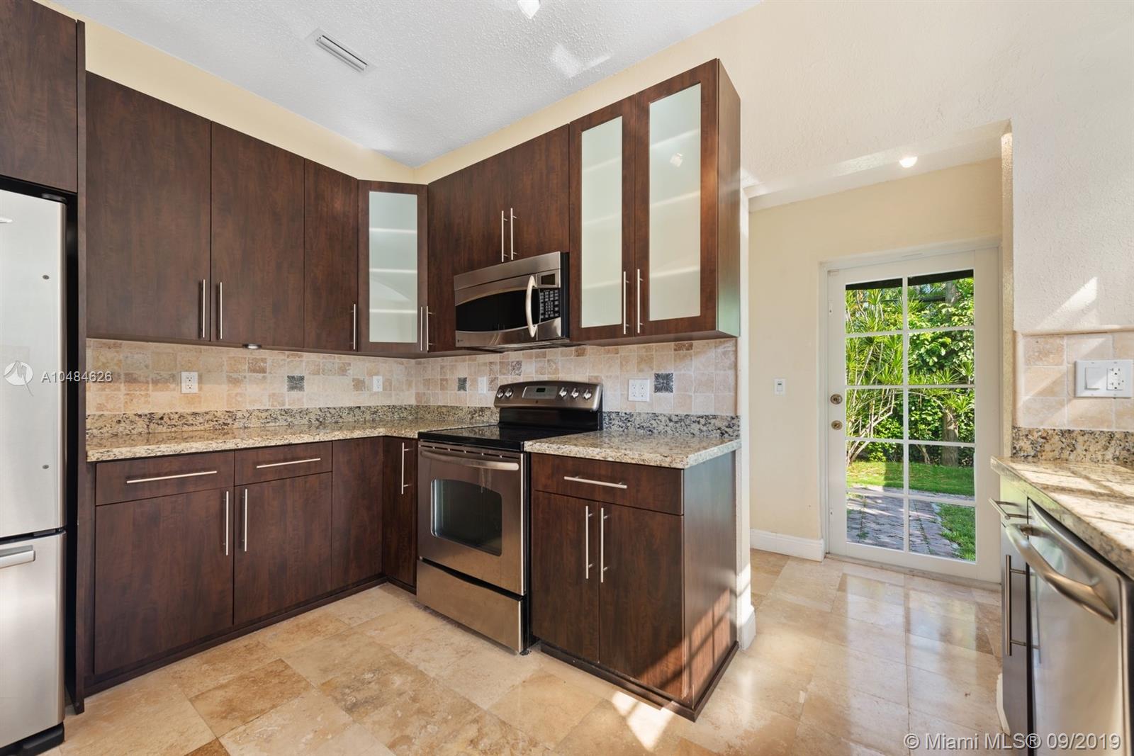 Beautiful 2 bedroom / 2 bathroom Old Spanish home. Remodeled kitchen with granite counter-tops and stainless steel appliances. Hard wood floors in social areas and carpet in bedrooms. Ample closet space. Enclosed front porch that can be used as a study or playroom. Private backyard for entertaining. One car garage. Near the best Coral Gables schools. Home was completely remodeled in 2011 (new roof, floors, windows, plumbing, etc).