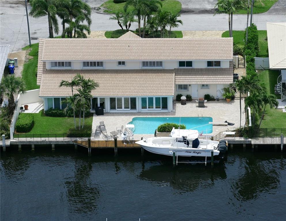 Second from the point with nice Intracoastal and boat parade views on 100 ft. of deep water. Partial impact glass. 2018 master bath with porcelain & glass tile, dark hardwood cabinetry & quartz tops. 16,000 lb. boat lift. Upgraded hardwood & granite kitchen with island. Sub-Zero, Viking, Wolf, Asko Appliances. Nice size family room with sliding doors opening to the pool deck. 2018 new tile roof. 880 ft. (per survey) of additional (high ceiling) attic space for increased living area or a 2nd master suite.