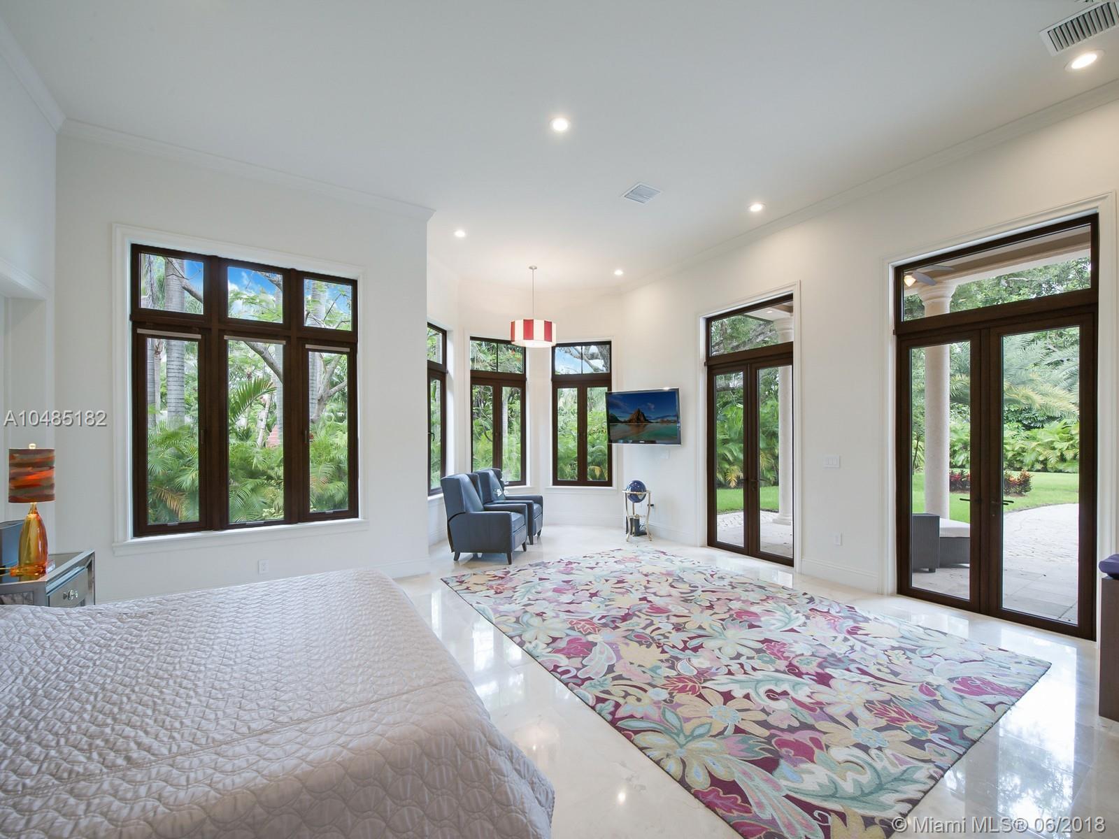 North Pinecrest Newer One Story, Mediterranean Villa. Acre surrounded by lush landscaping and nested with mature live oaks. Imposing entry and living room with 25' soaring ceilings. Luxurious use of high end finishes and materials. LaFinestra impact windows and doors, offer plenty of natural light. Gourmet chef's dream kitchen with Wolf/Miele appliances, eat in kitchen. Bedrooms offer Bathrooms en-suite with granite slab baths, large closets, solid core 8’ doors, spectacular outdoor luxury with resort style freeform saline pool, tanning ledge, and spas. Detached Summer kitchen offers built in BBQ and bar area perfect for entertaining. Surround sound, CCTV, Security System, wall and gated! Pinecrest Schools and close to major highways.