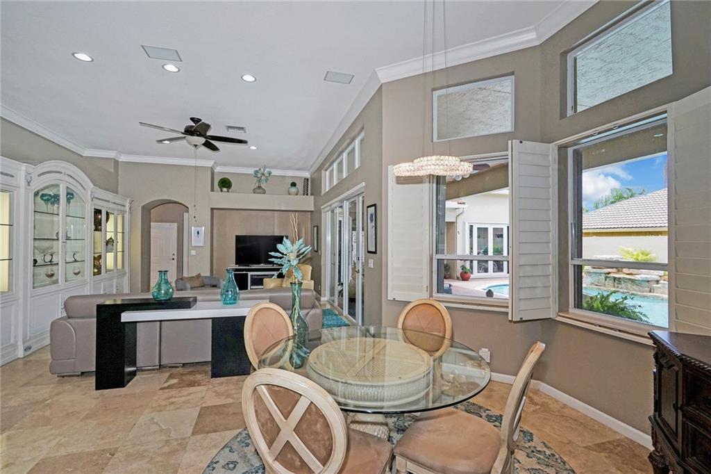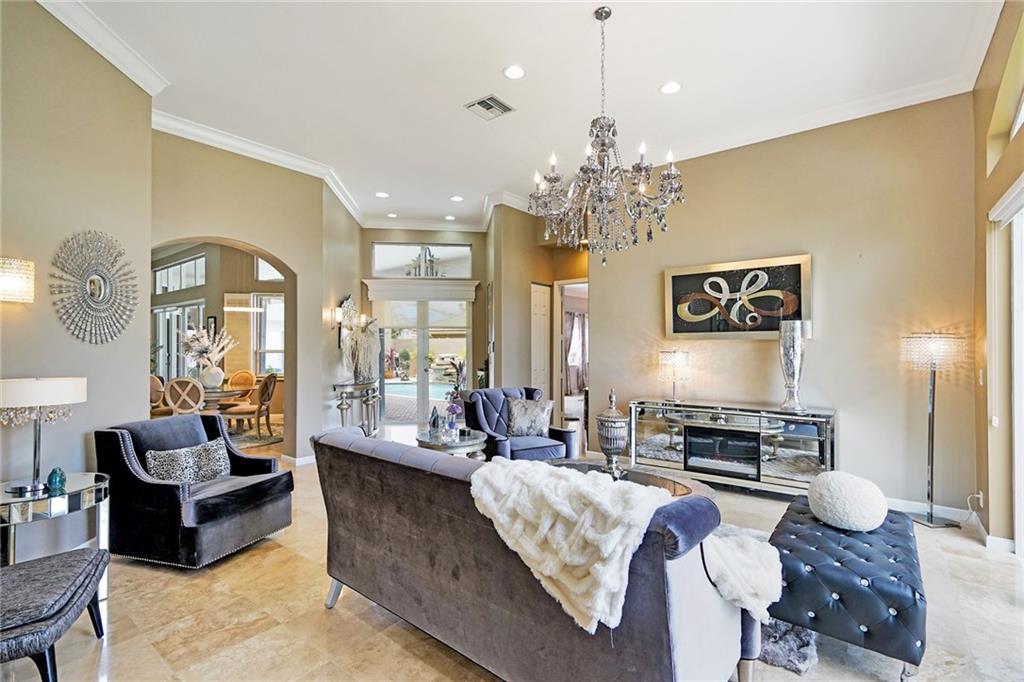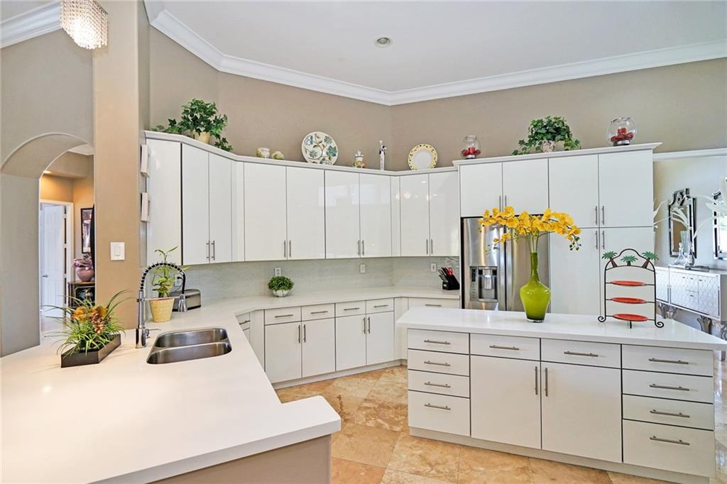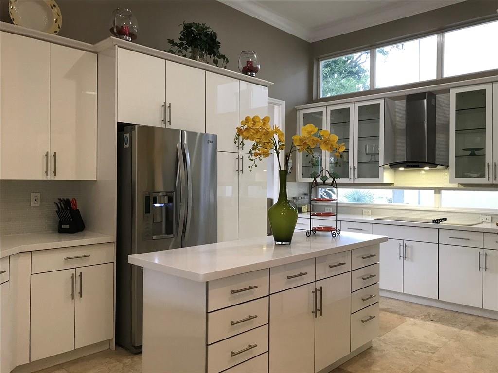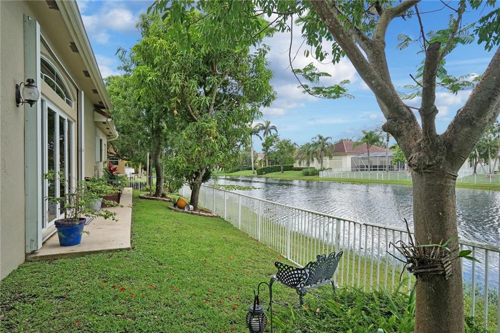 This gorgeous 4 bedroom courtyard home with pool & lakefront is a perfect "10" ready for entertaining. Gourmet kitchen remodeled with quartz, stainless appliances & custom cabinets opens to a huge family room overlooking the sparkling pool/spa/waterfall. Saturnia marble floors, high ceilings, spacious rooms, surround sound, this home has it all and is move-in ready. Whole house generator and some accordion shutters. Guest house with full bathroom & wet bar. Must see!