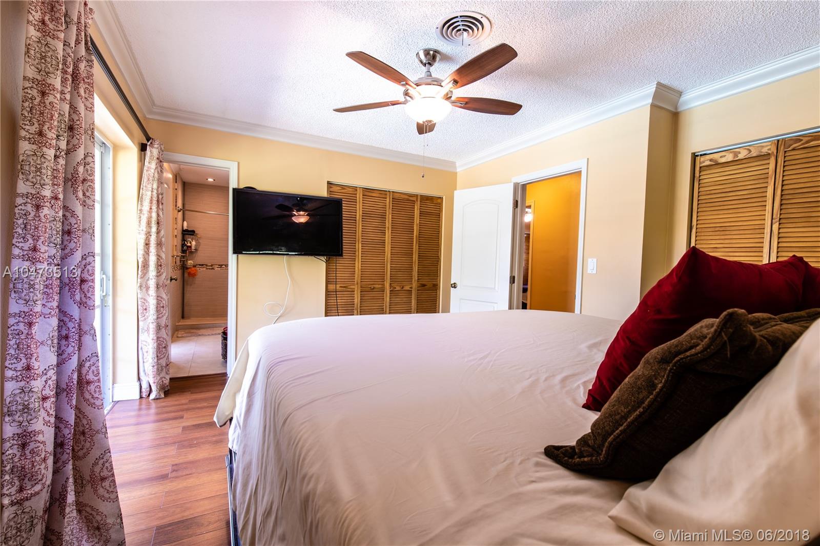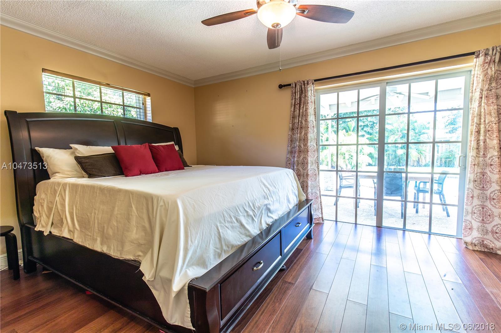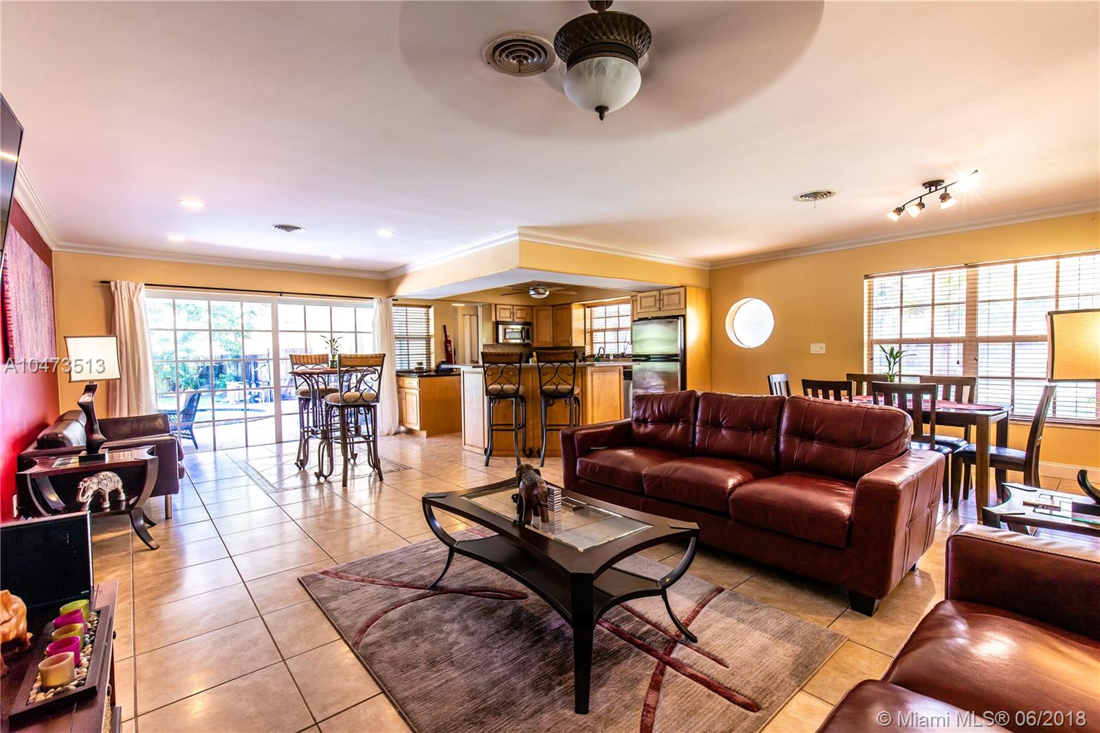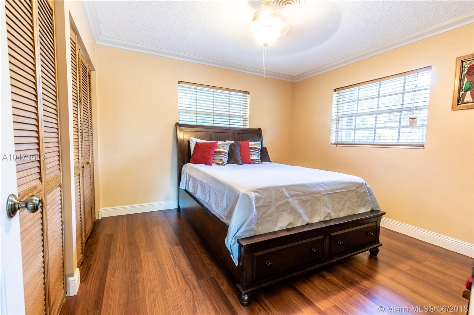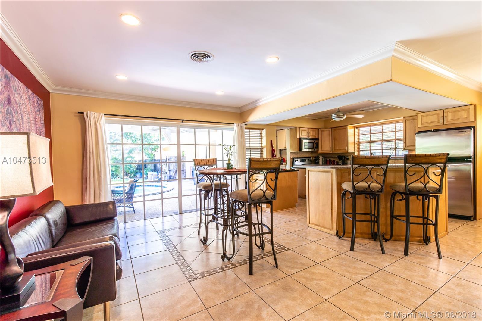 JUST LISTED! This is a lovely corner home that features a courtyard entrance; 3 bedrooms and 2 bathrooms with an open layout and salt water swimming pool. Great for Entertaining with a large fenced in yard. Master bedroom overlooks the pool area with an updated in suite master bath. The second bath has also been updated. Kitchen has Kraft-maid wood cabinets and stainless steel appliances. There is crown molding throughout, with tile and wood floors. This home has hurricane shutters and a separate full size washer/dryer area and pantry. This home has lots to offer and is in a great neighborhood. This home will not last. BY APPT ONLY!
