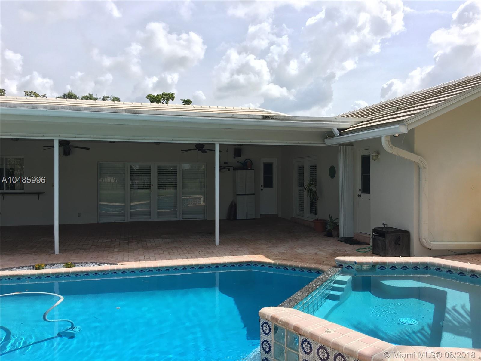 Beautiful, 4 bedroom/3 bath house on large lot in Jacaranda Country Club. French doors open out to the patio from the living room, master bedroom and family room. The upgraded kitchen has cherry cabinets with dark granite counter tops, GE refrigerator, Kohler sink, Miele dishwasher, Wolfe stove top and Kitchen Aid double ovens. Eat in kitchen area with a table, bench and chairs. Separate laundry room (washer/dryer included) with pantry. Family room has custom built in book shelves and TV cabinet along with a built in bar. Huge backyard overlooks the golf course, with resurfaced pool/spa, the large patio. Accordion shutters, sprinklers, alarm, 2 AC Units and 2 car-garage. Great Plantation schools.
