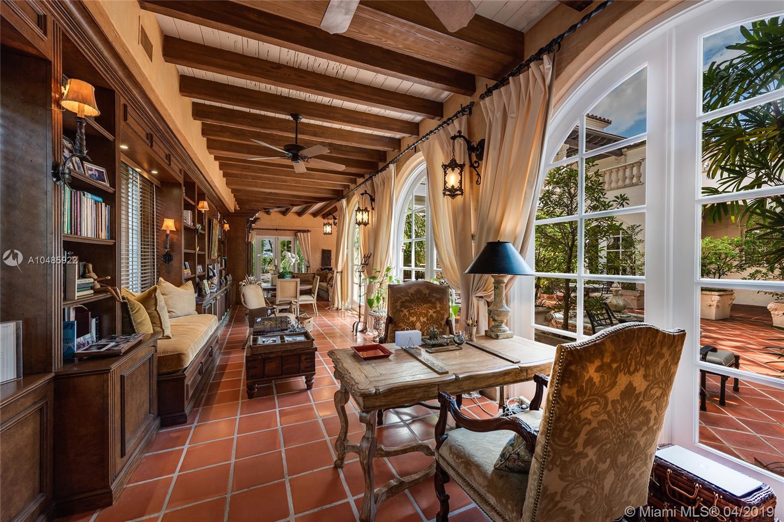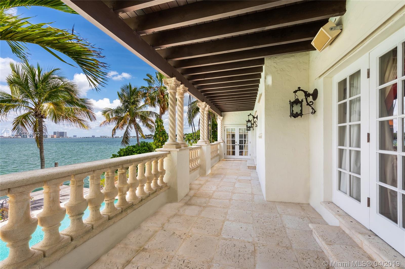 Seller Motivated! Enjoy wide Biscayne Bay and stunning sunsets over the Downtown Miami skyline from this magnificent 2-story waterfront Mediterranean Revival estate designed by renowned architect Martin Luther Hampton. 6BR/8+2BA (incl. 2 private guest suites), & a romantic interior courtyard w/fountain. An impressive Great Room w/fireplace & Pecky cypress beamed ceilings greets leading to an expansive living room w/coffered ceilings, Saturnia marble floors, fireplace & formal dining room all w/open bay views. An elegant 2nd floor master suite sports a private sitting room, large balcony to the bay & balcony to courtyard. Spacious His & Her marble master bathrooms each w/walk-in closets. Entertain outdoor w/a large pool, covered loggia, & summer kitchen. Boat dock & 75.6’ of waterfront.