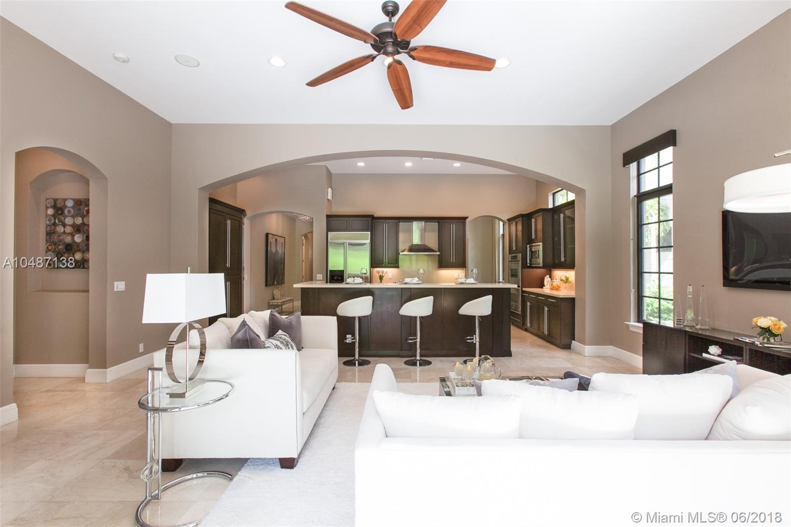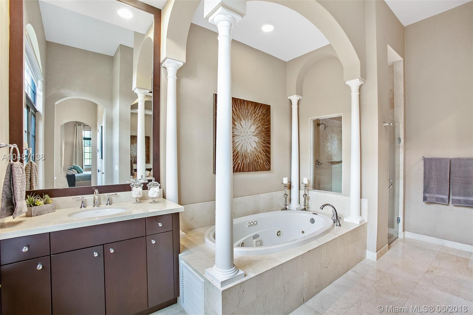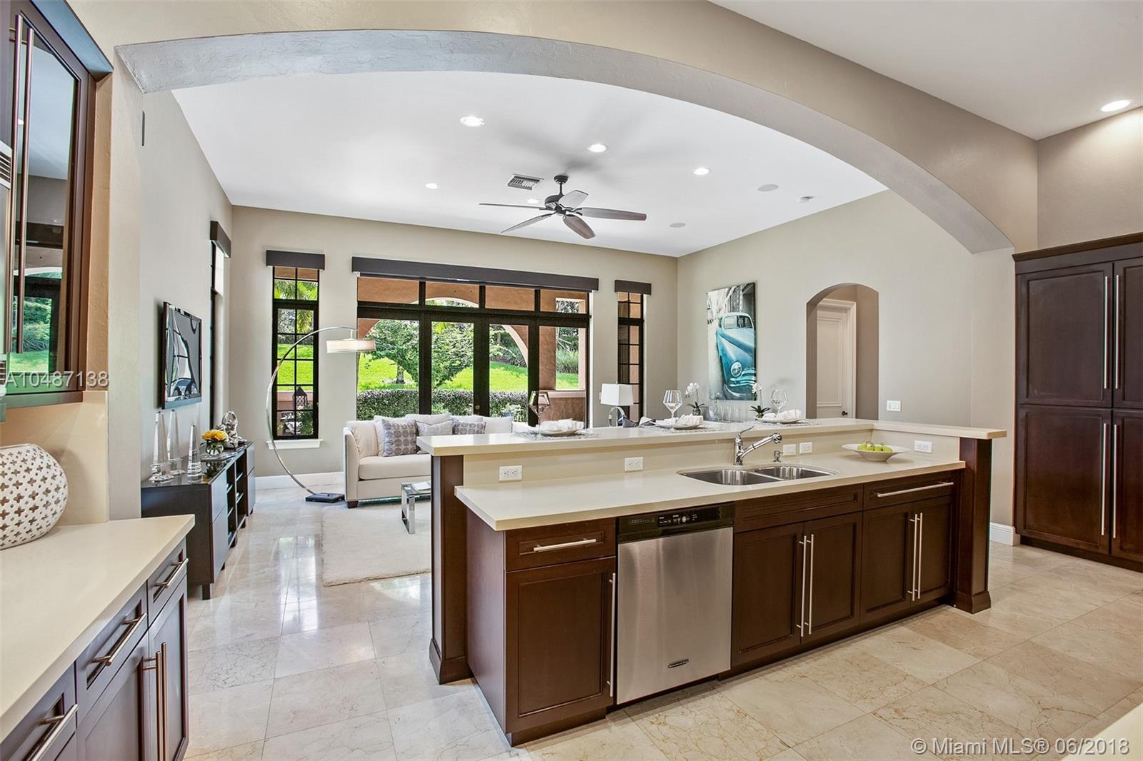 Parkland Golf Executive Home; From the grand entrance featuring a welcoming garden and designer double height wood entry doors you enter into this hidden gem. Upon entering the Art Gallery Foyer guides all guests into this well designed floor plan. The residence features 4 bedrooms (one currently used as an office), volume ceilings, marble floors through out the main areas and solid wood floors in 3 of the 4 bedrooms. Formal Dining Room, Open concept kitchen and great room which overlooks the outdoor pool, covered porch located with no neighbors behind the home. The kitchen is spacious with a 42" cooktop, quartz counter tops, bar top eating area and pantry. Well maintained. Impact Resistant Windows and Doors; per Developer Plans; Sought after parkland schools.