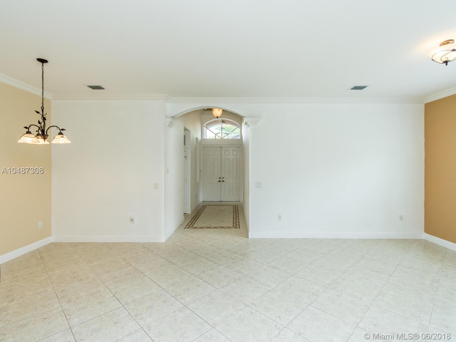 **DESIRED SUZANNA MODEL WITH POOL**4 BEDROOMS, 3 FULL BATHROOMS, 2 CAR GARAGE. PAVER DRIVEWAY HEAD TO DOUBLE DOOR MAIN ENTTRANCE. TRIPLE SPLIT FLOOR PLAN. 10' HIGH CELLINGS. ELEGANT CROWN MOLDING ALL AROUND. DIAGONAL TILE IN SOCIAL AREAS AND BATHROOMS;LAMINATED WOOD FLOORING IN BEDROOMS. UPGRADED WOOD CABINETS IN KITCHEN WITH BLACK GRANITE AND SS APPLIANCES. BREAKFAST NOOK WITH POOL VIEW. FORMAL LIVING AND DINING. OPEN FAMILY ROOM HEAD TO PAVERED POOL AREA. FENCED PATIO, PERFECT FOR FAMILY ENTERTAINTMENT.KIDS FENCE FOR POOL AT THE GARAGE. SPACIOUS MASTER ROOM WITH TWO WALKING CALIFORNIA CLOSETS.ROMAN TUB AT MASTER BATHROOM.SEPARATE SHOWER WITH TEMP GLASS DOOR.HER AND HIS SINK. AND MUCH MORE..CLUB HOUSE WITH TENNIS COURTS, GYM,PLAY GROUND, BASKETBALL.GUARD GATE 24/7.COME!, YOU WILL LOVE IT!